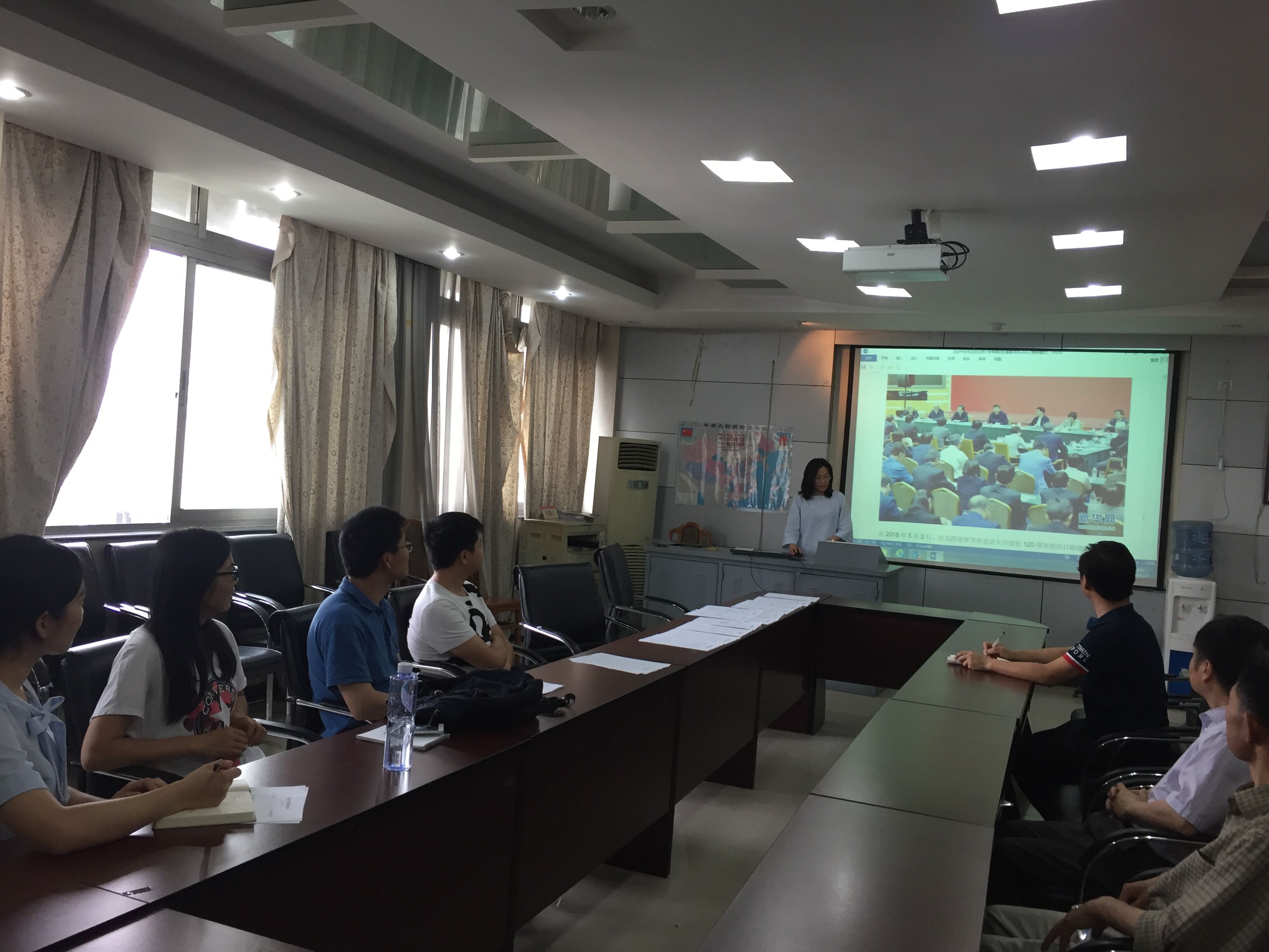 2018-05-295 月29日上午,学院党委召开本学期第五次中心组学习扩大会议,专题学习习近平总书记北大讲话精神。会议由党委副书记罗妍妍同志主持,...