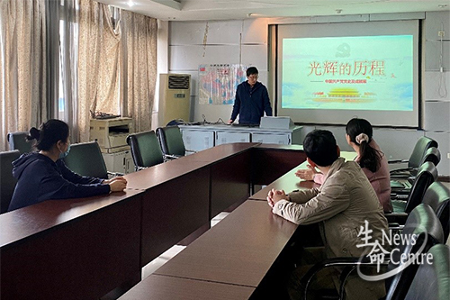 2021-04-10为庆祝中国共产党成立100周年,深入开展党史学习教育,2021年4月8日下午,新澳门六合彩资料 药学系教工党支部在九里校区3609会议室开展第一期党史学...