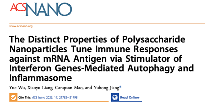 江育虹副教授研究小组在国际TOP期刊ACS Nano (IF=17.1)上发表免疫佐剂机制领域论文“The Distinct Properties of Polysaccharide Nanoparticles Tune Immune Responses against mRNA Antigen via Stimulator of Interferon Genes-Mediated Autophagy and Inflammasome”,报道了多糖佐剂纳米化的免疫增强机制。江育虹副教授为通讯作者,2020级硕士研究生吴月为第一作者,硕士研究生梁晓钰参与部分工作,茆灿泉教授给予重要指导。