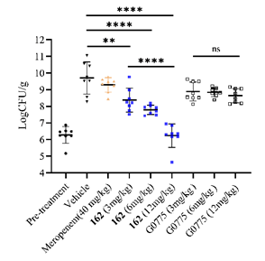 图2 美罗培南(meropenem)、162和G0775的小鼠体内药效