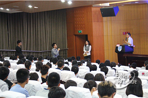 介绍完冷冻电镜结构生物学的相关理论内容后,隋森芳院士展示了该领域的相关试验结果。随后,同学们向隋院士提出生物学领域问题,隋院士在台上耐心为同学们解答。当被问到国内拥有可以进行冷冻电镜技术实验的学校数量和该技术在我国发展现状时,他表示,如今国内已有二三十所大学具备该项实验相关条件,并指出该项技术目前在国内发展迅速,其难度处于国际前沿之一。