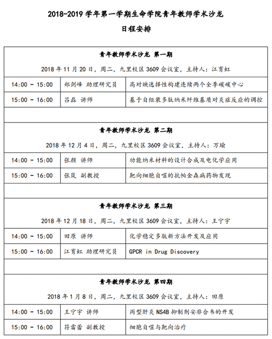 本学期学术沙龙安排如下:
