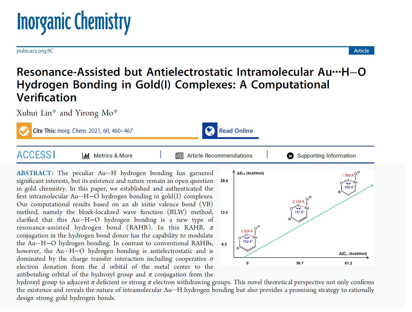 为第一单位发表了题为“Resonance-Assisted but Anti-Electrostatic Intramolecular Au∙∙∙H−O Hydrogen Bonding in Gold(I) Complexes: A Computational Verification”的研究论文。新澳门六合彩资料