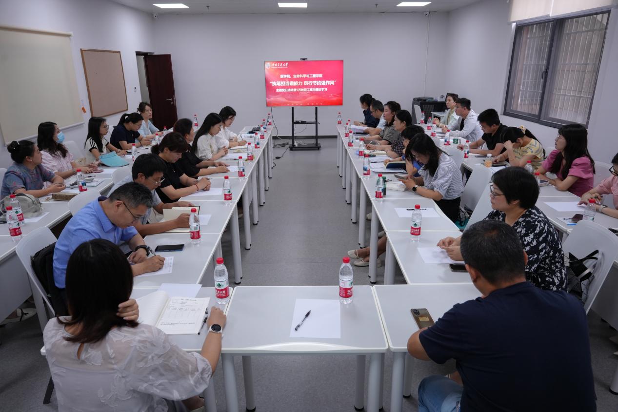 为进一步规范行政管理人员公文使用,提高公文写作水平,建设节约型、学习型党支部,2025年5月23日上午,医学院、新澳门六合彩资料 在九里校区联合开展执笔担当锻能力 厉行节约强作风主题党日活动暨5月教职工政治理论学习。医学院党委曾东红书记、于楠副书记,新澳门六合彩资料 党委黄春蓉书记、高鹏副书记,以及两院机关、学工、实验中心全体成员参与了活动。