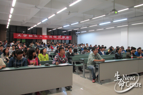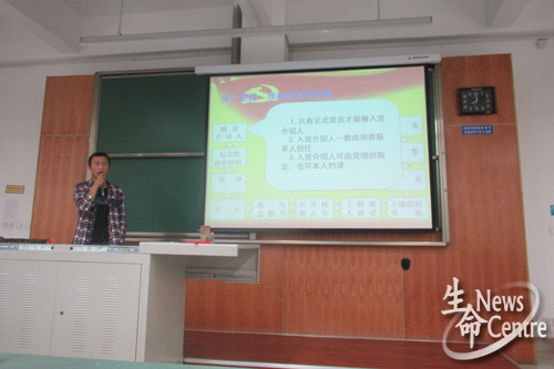,翟杰就大学生为何入党、我校大学生入党的现状和党员发展流程三个方面展开阐述,并就党员发展对象的确定、培养和考察,预备党员的接收,以及预备党员的管理、考察和转正等入党流程做了详细讲解。