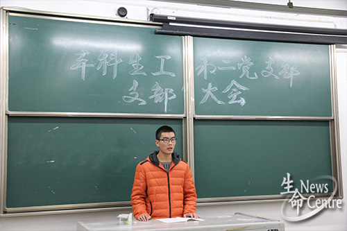 接下来,在会党员发表意见,对发展对象能否入党进行讨论。正式党员采取无记名投票的方式进行表决。最终由党支部书记徐启望宣布支部大会决议。