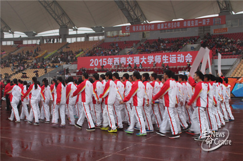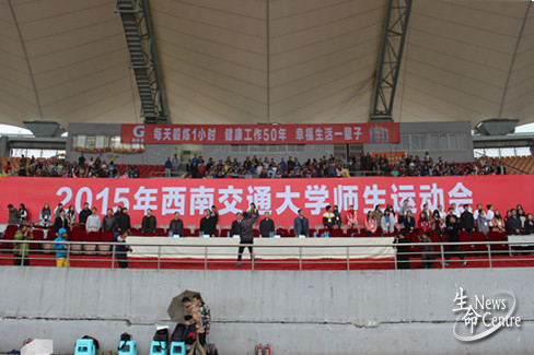 ,西南交通大学师生运动会开幕式在犀浦校区田径场隆重举行。出席本次开幕式的领导有西南交通大学党委书记王顺洪,校长徐飞,党委副书记陈志坚、桂富强,副校长蒲云。
