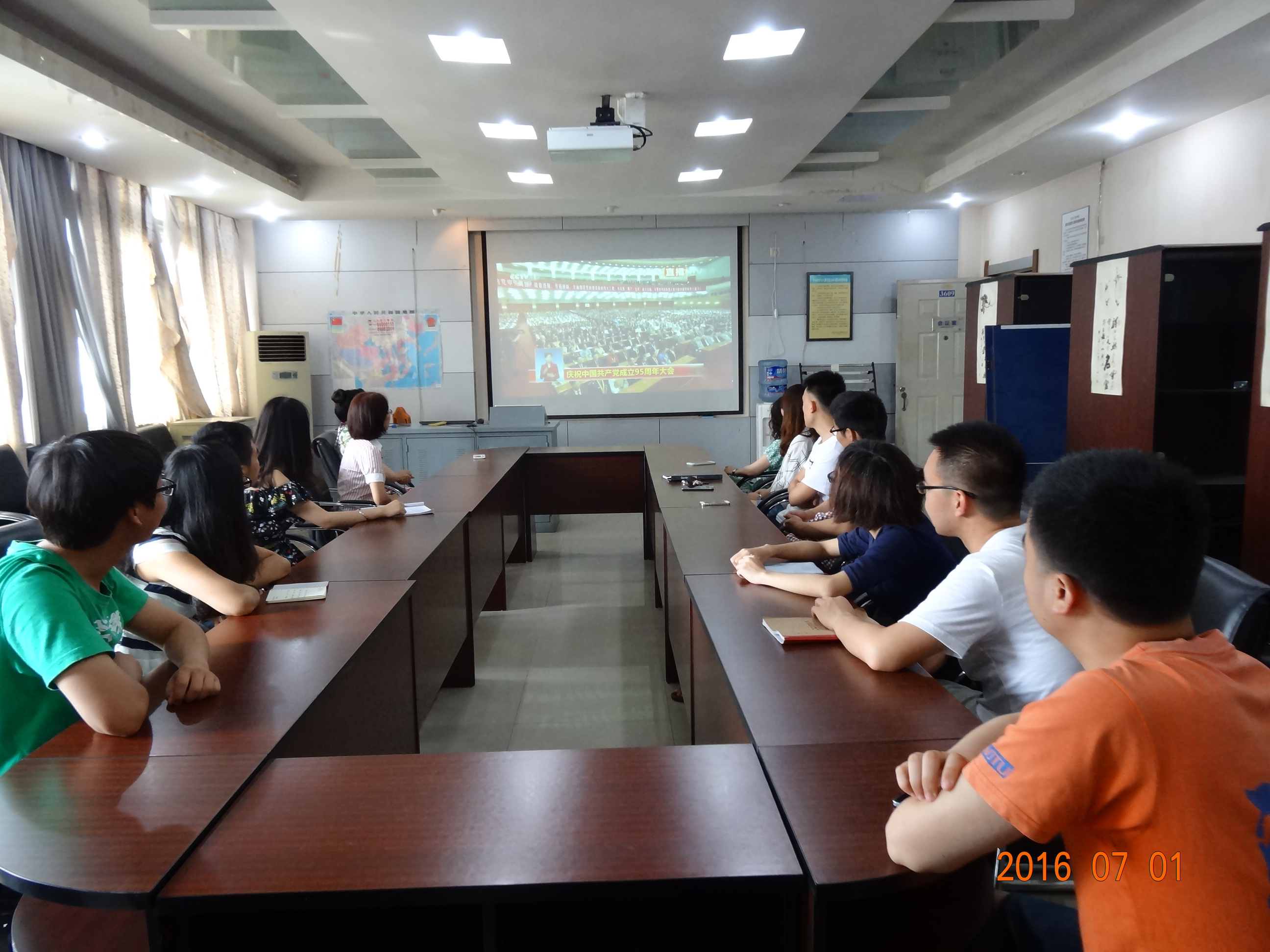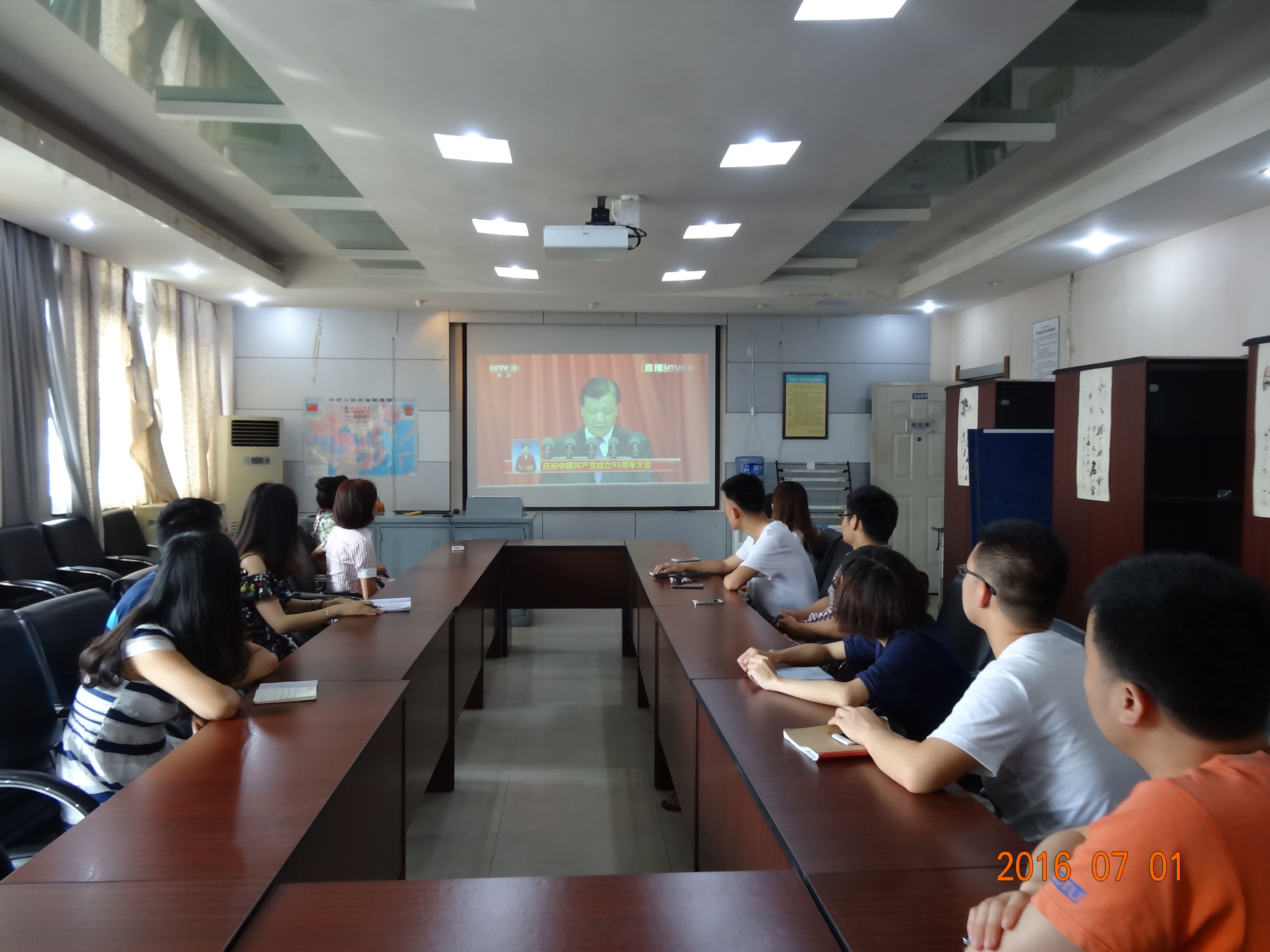 为迎接建党95周年,按校党委统一部署,7月1日上午,新澳门六合彩资料 党委组织学院党员干部、师生代表在3609集体观看了中国共产党成立95周年大会现场直播视频。学院党委书记李卓慧、党委委员贺妍、办公室主任陈琳、研究生党支部书记吴润、李祯、本科生党支部书记黄国强,以及师生代表20余人观看了视频。与此同时,学院师生党员还通过网络形式,在办公室、实验室、宿舍等地收听收看了直播。