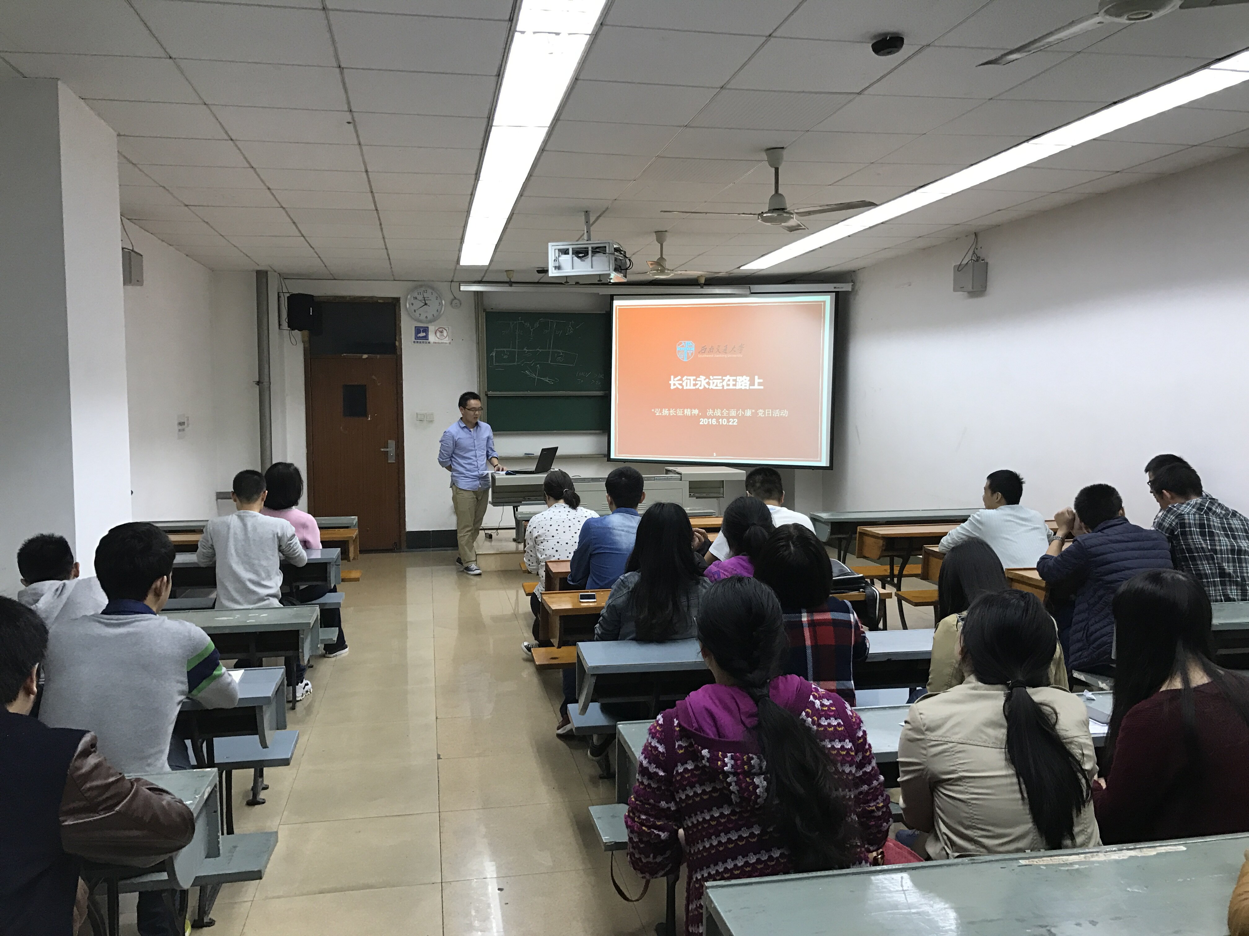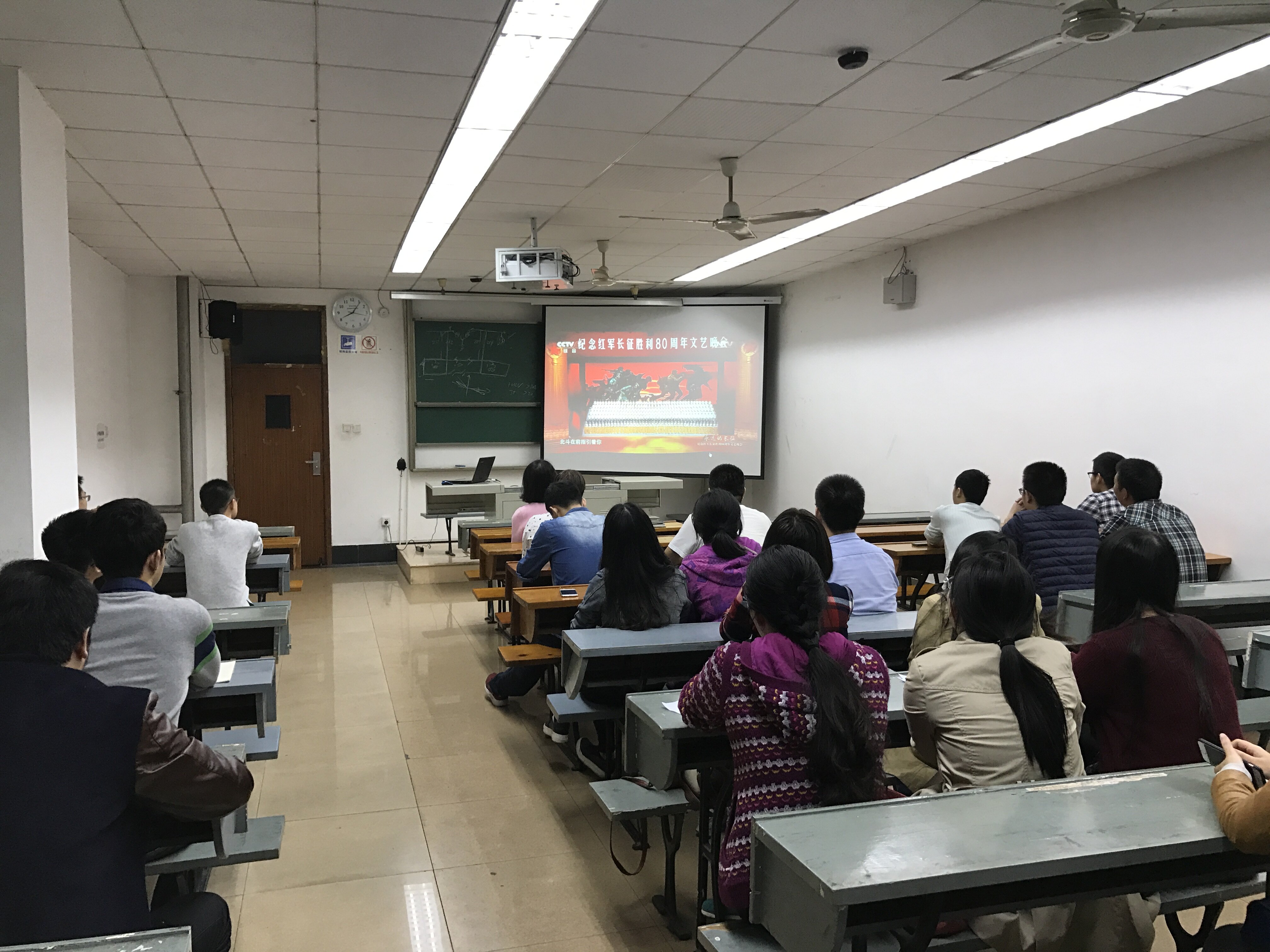 2014级硕士一班、二班党支部在逸夫馆4305B联合开展了“长征永远在路上——弘扬长征精神”党日活动,党日活动以观看《纪念红军长征胜利80周年文艺晚会》和学习《习近平在纪念红军长征胜利80周年大会上的讲话》的形式进行。活动由14级硕士2班党支部书记宋志磊主持,2014级研究生全体党员和入党积极分子参加。活动还特别邀请了学院党委李卓慧书记莅临指导。