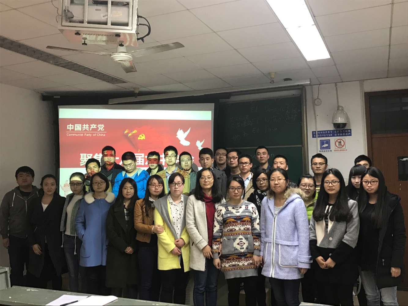 14级硕士一班和硕士二班党支部在九里校区4304A联合开展了党的十八届六中全会精神学习活动,活动由14级硕士二班党支部书记宋志磊主持,2014级全体研究生党员和入党积极分子参加。
