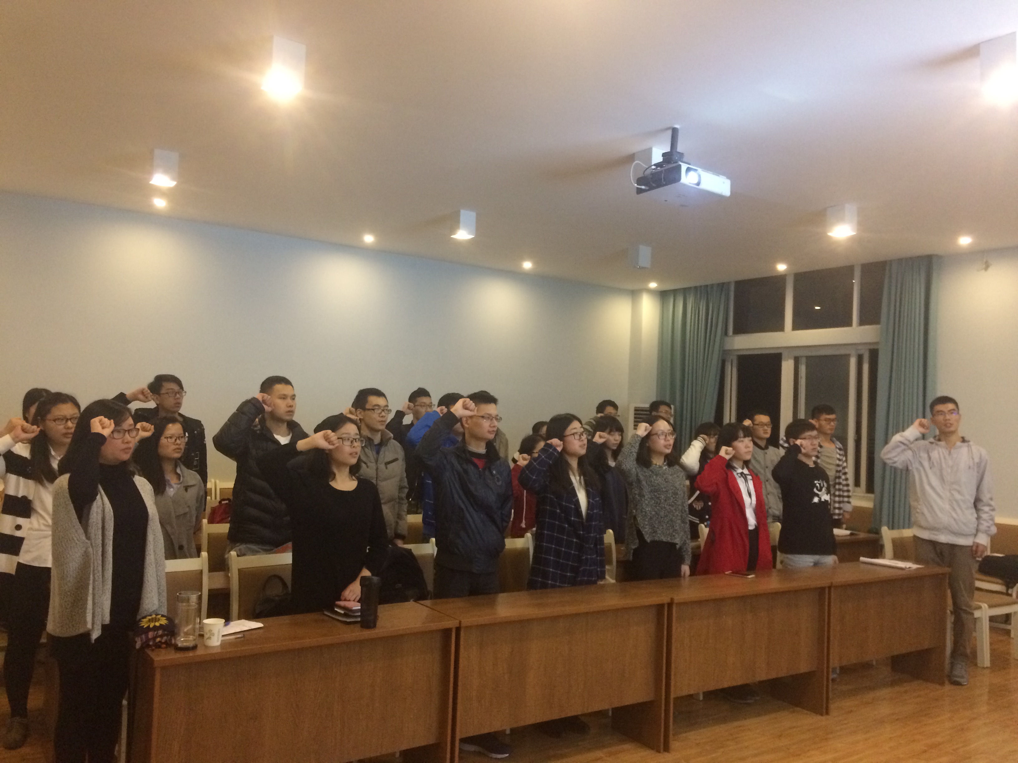 学习结束后党支部还就组织发展问题进行了讨论研究,最终同意陈伟、张碧宇等五名同志转正,石春兰、滕月泰等六名同志成为中共预备党员。大会最后由党支部书记杜隆飞带领党支部全体同志进行“新党员入党宣誓、老党员重温誓词”活动,希望所有同志能够牢记誓言,不忘初心。