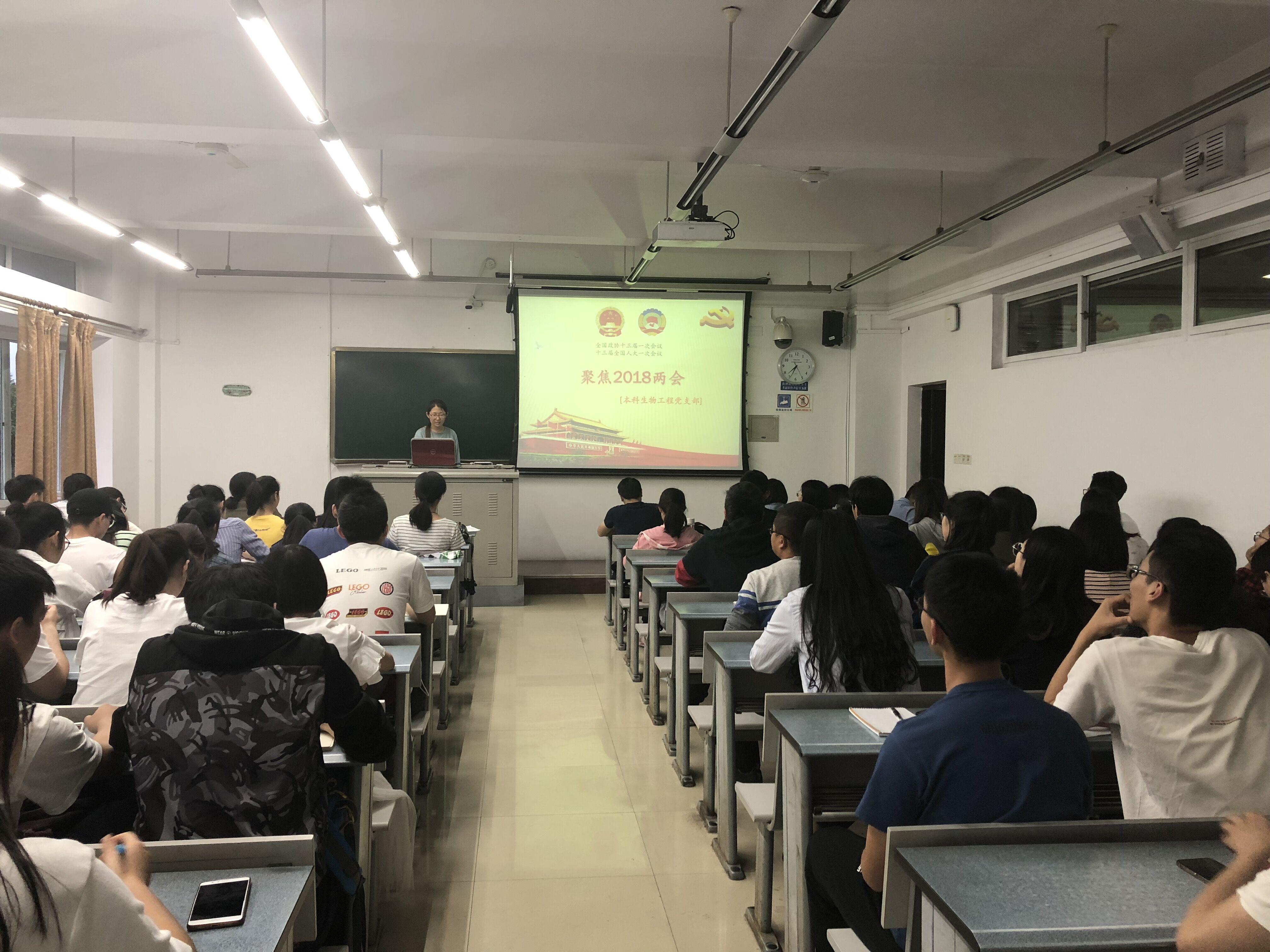 4月27日19:00,本科生物工程党支部在X1219召开专题学习会,集中学习学校全面从严治党会议精神和2018全国“两会精神”。会议由本科生物工程党支部副书记罗桂芳主持,本科生工党支部全体党员参加。