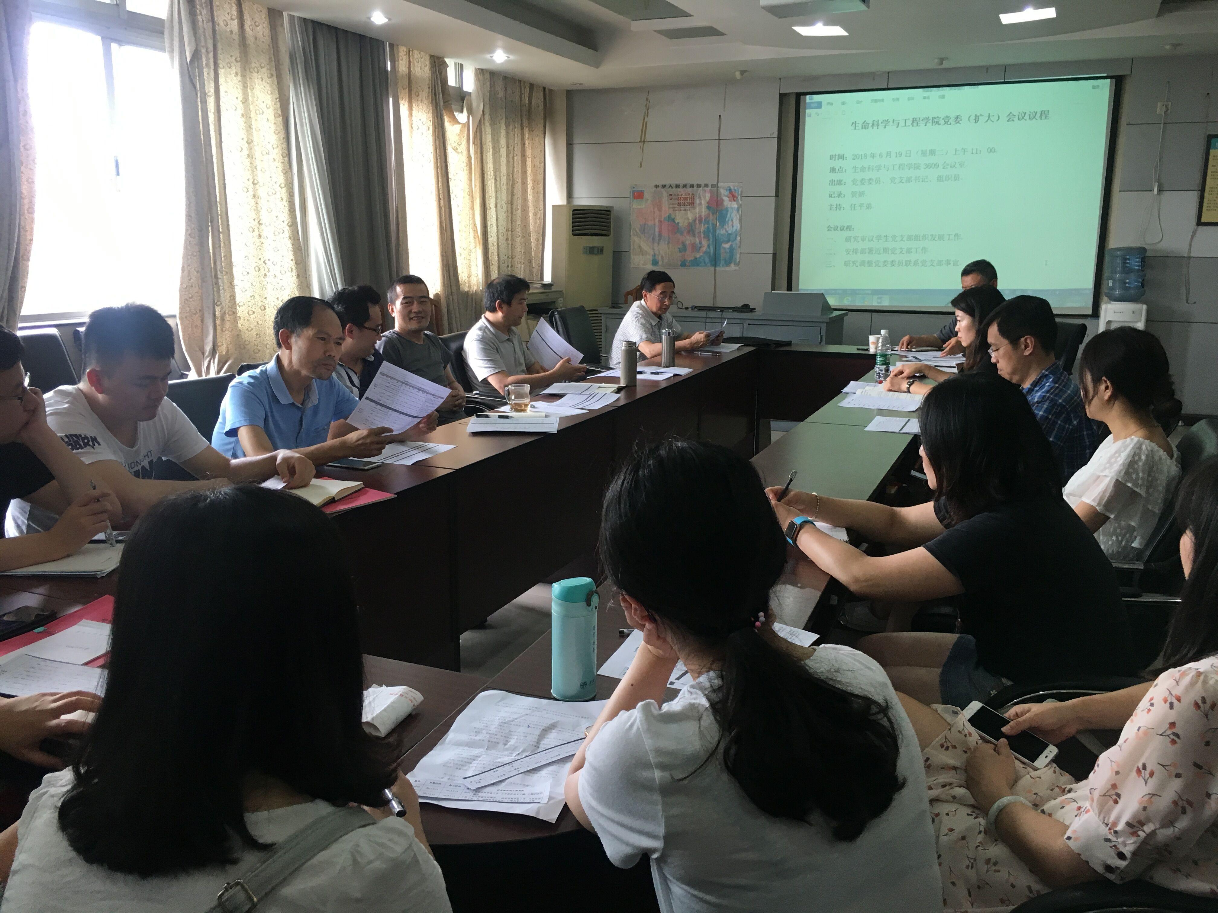6月19日上午,学院党委(扩大)会议在学院3609会议室召开。会议由学院党委书记任平弟同志主持,学院全体党委委员、党支部书记和组织员参加了会议。