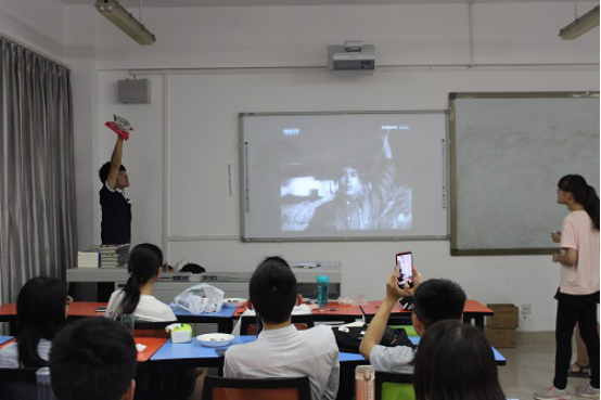 随后,同学们前往X2019,进行第二环节——红色电影配音。本次活动所用电影片段为董存瑞舍身炸碉堡一幕及电影《建党伟业》中陈独秀、李大钊同志和孙中山先生讲话一幕。同学们自主分组,随机抽取片段并观看,随后为其配音。
