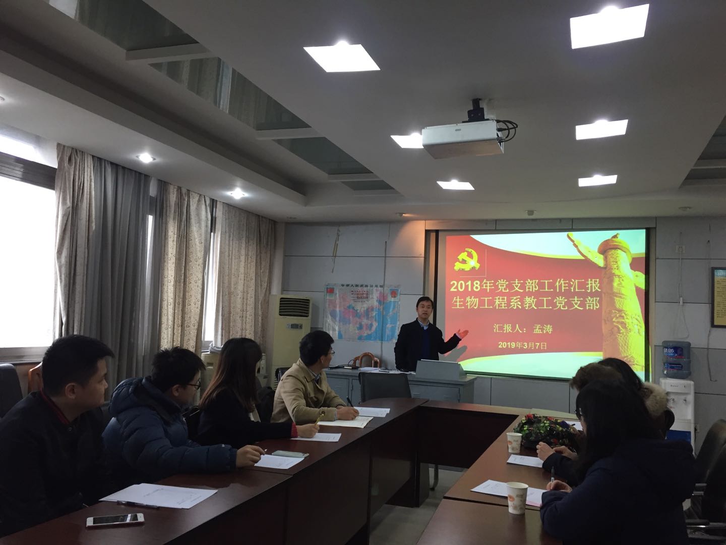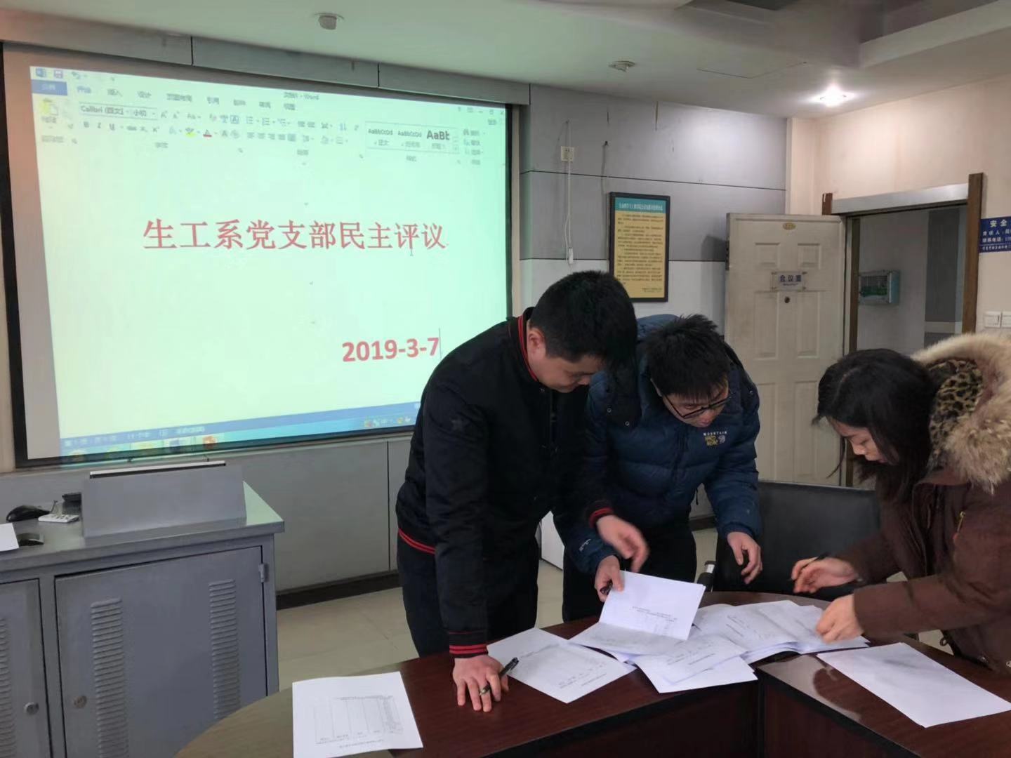 3月7日下午,生物工程系教工党支部在学院3609会议室开展了组织生活会暨民主评议党员活动。会议由支部书记孟涛同志主持,支部成员参加了会议。