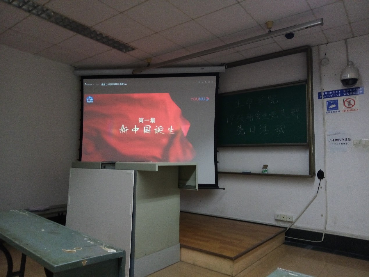 2019级研究生党支部在4304a教室展开了“回顾共和国70周年辉煌历程”的党日活动,活动由党支部书记吴京川同志主持。