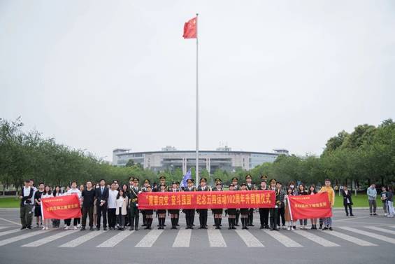 本科生物工程党支部、制药工程党支部成员在图书馆前参加了纪念五四运动升旗仪式。五四运动是中国进步青年在当时对时代发出的觉醒号角,在102年后的今天,我们仍会在国旗的缓缓升起中铭记着他们的勇敢奋斗,传承五四精神,知史爱党爱国。