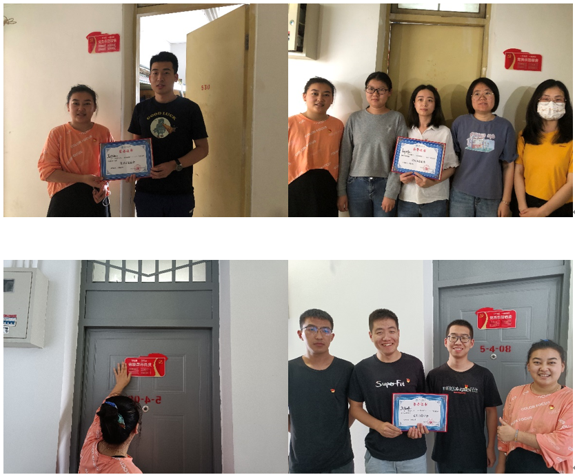 兰卓老师和胡慧怡老师首先为获得“党员示范宿舍”称号的J125030、J123053、J54008、T154060四间宿舍依次颁发了荣誉证书,并为“党员示范宿舍”挂牌,同时,为保障同学们在宿舍的学习和生活安全,兰卓老师、胡慧怡老师及院研究生会深入学生宿舍,依据《西南交通大学学生公寓管理办法》对研一、研二共52间宿舍进行了严格细致的检查。