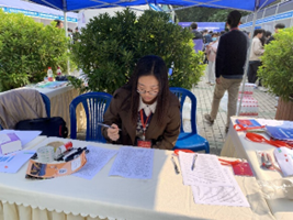 招聘会现场人潮涌动,应聘招聘场面呈现出一片热火朝天的景象。活动中,志愿者在招聘会现场开展会场服务、咨询引导、就业创业政策讲解等志愿服务,帮助同学们更顺利地在招聘会上找到合适的岗位。