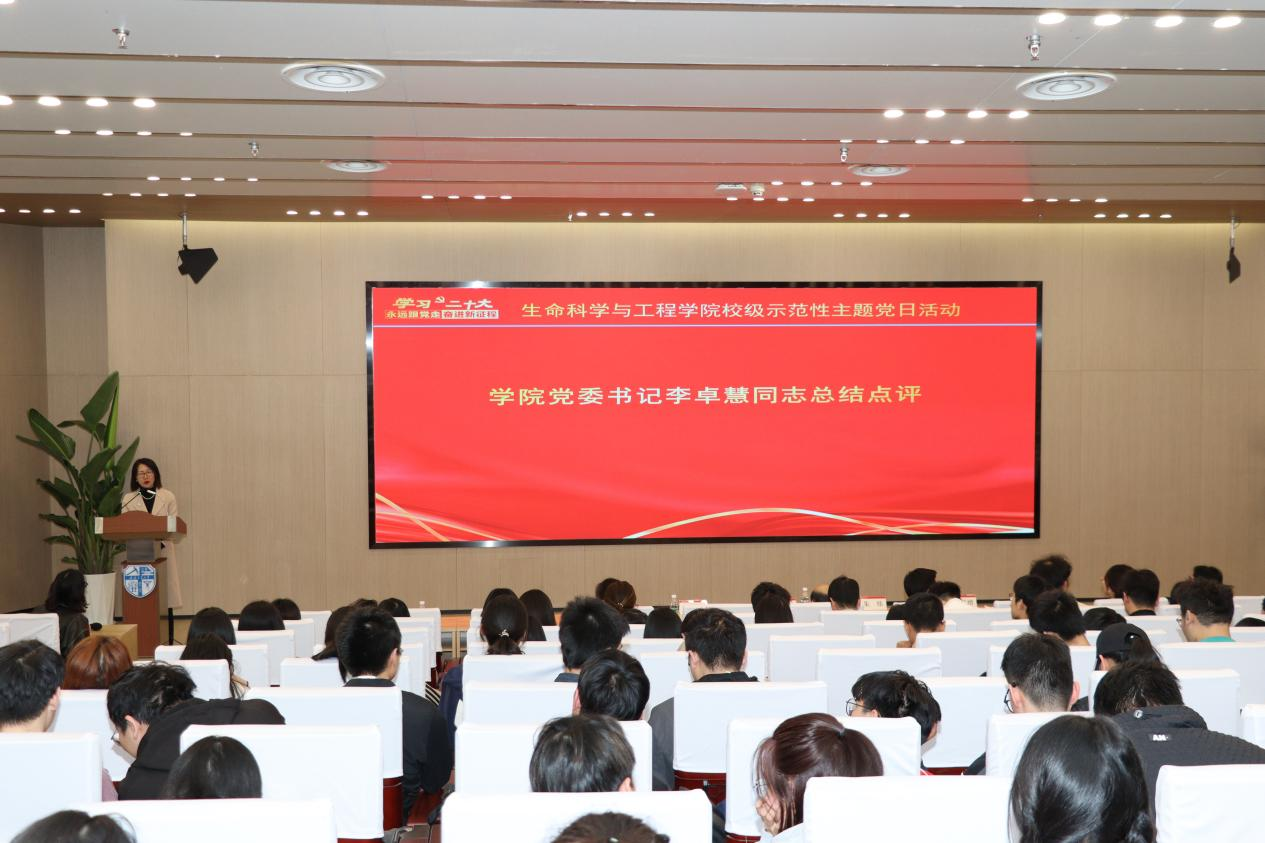 院党委书记李卓慧最后对主题党日活动作总结点评。她说,这是一次高质量高水平的主题党日活动。通过党的二十大报告学习手账展示,促进了同学们对党的二十大精神的深入学习;通过青年讲师团、驻班党员工作,促进了党员先锋模范作用和优秀学子典型示范作用的发挥;通过“学思讲坛”,将服务和引领青年学子更好成长;通过林伯海教授精彩的辅导报告,让我们对“以中国式现代化推进中华民族伟大复兴”有了更全面的了解。希望同学们通过本次活动,能进一步坚定理想信念,成长为能担当民族复兴大任的时代新人。