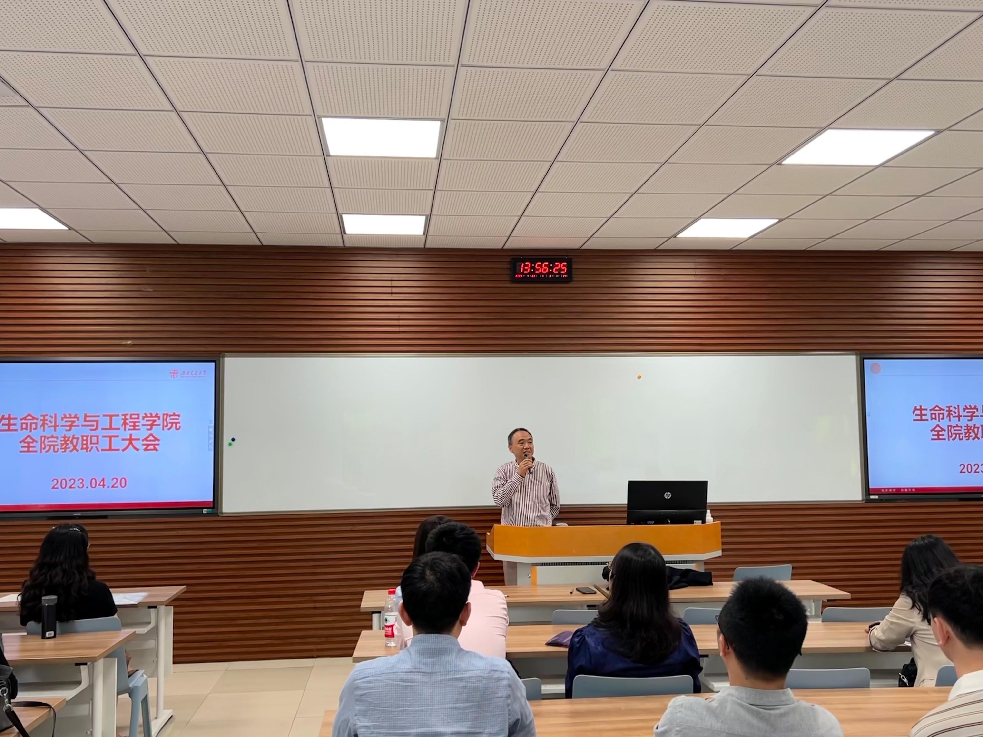 会议第二环节,周先礼院长向大会介绍学院今年的工作要点。院长表示,学院今年将大力推进学科及专业建设、教学与科研工作、实验室安全与管理等方面工作,需要学院全体教职工齐心协力,攻坚克难,希望老师们提升责任心,适应学院的发展要求,推动学院高质量发展。