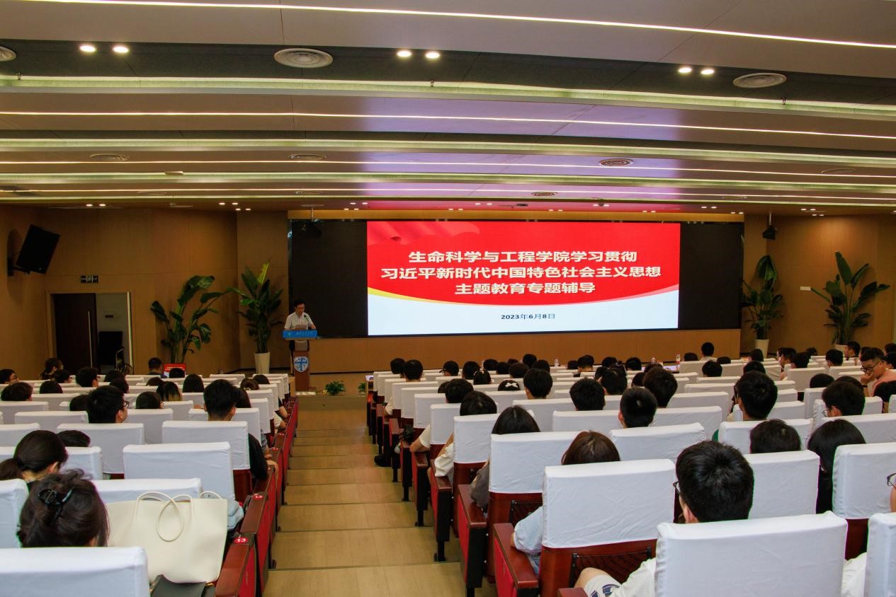 在犀浦校区图书馆一号报告厅举办学习贯彻习近平新时代中国特色社会主义思想主题教育专题学习,特邀学校青年讲师团成员、马克思主义学院马先睿副教授作专题辅导报告。学校主题教育监督指导组成员李煜宏老师、学院党政班子成员及300余名师生党员、入党积极分子参与本次专题辅导报告。