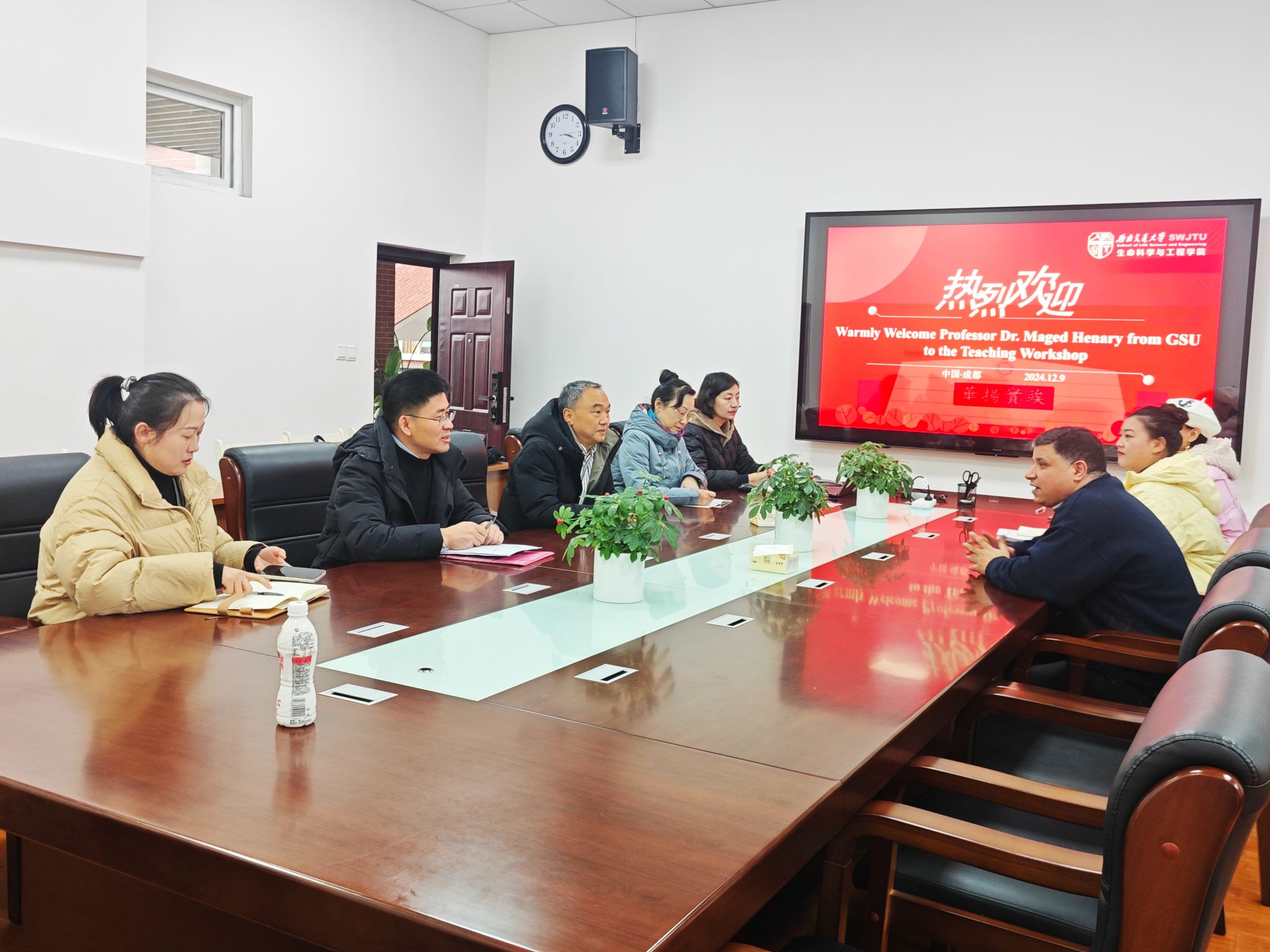 传达GSU近期对生物工程中外合作办学项目的研讨内容,以及双方未来的合作计划。在亲切而深入的交流中,周院长与Maged Henary教授就合作项目的进展、挑战及机遇进行了坦诚的讨论,并就如何进一步深化合作、提升项目质量达成了共识。