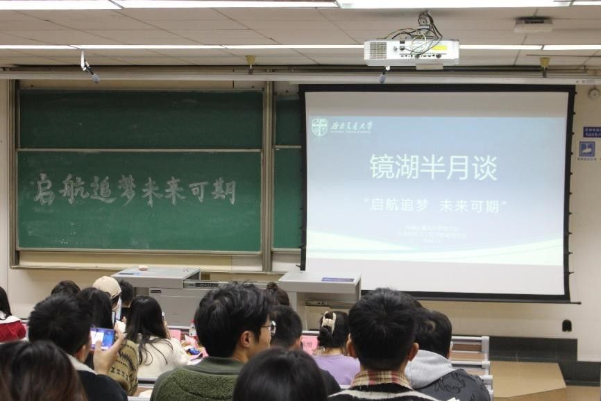 于逸夫馆4408教室举行镜湖半月谈——“启航追梦,未来可期”优秀朋辈分享交流会,学院团委副书记、研究生辅导员杨颖增老师,研究生辅导员黄斌翰老师,校研究生会工作人员以及兄弟学院研究生会代表出席本次活动,学院2024届全体毕业生参与活动。活动由学院研究生会主席团成员房丽蓉主持。