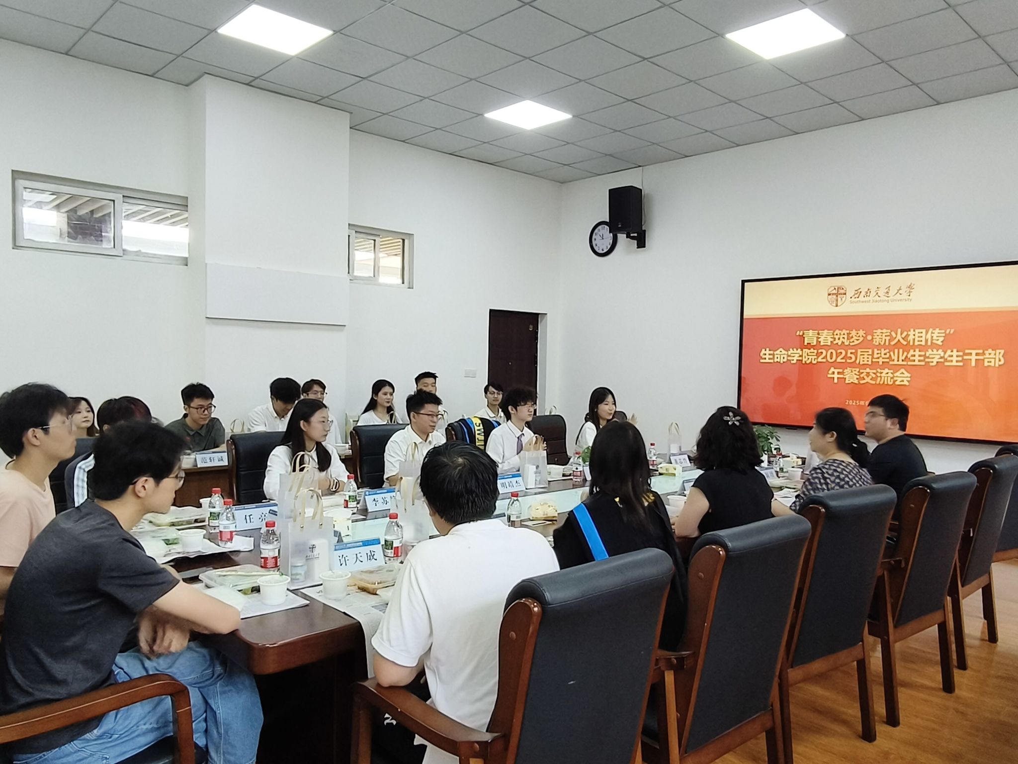 在X2314会议室举行"青春筑梦·薪火相传"2025届毕业生学生干部午餐交流会。学院党委书记黄春蓉、党委副书记高鹏出席活动,团委副书记胡慧怡、许青、李麒麟、潘星宇等团学组织指导老师及各团学组织2025届毕业生学生干部代表30余人参加交流。交流会由学院团委书记杨颖增主持。