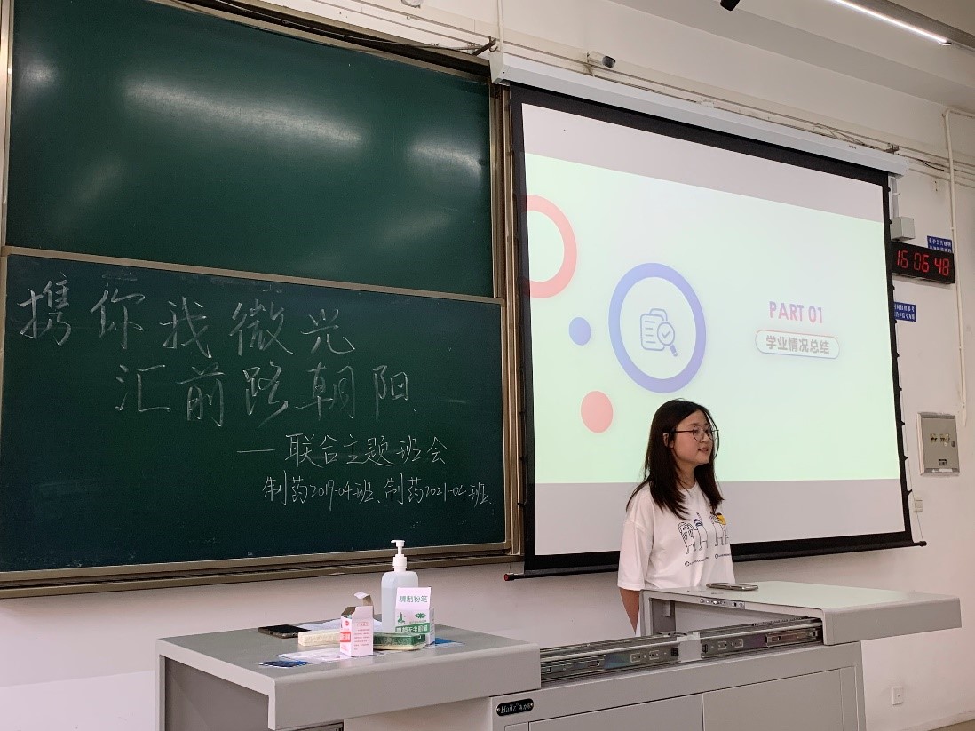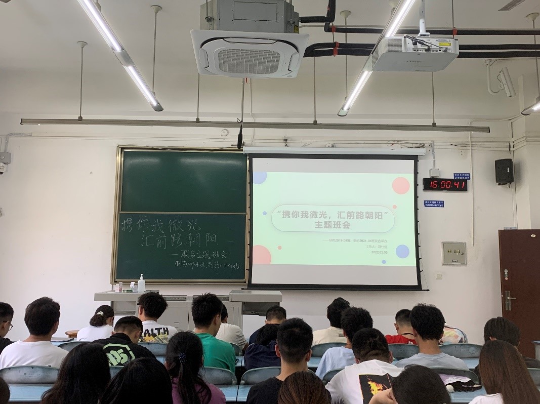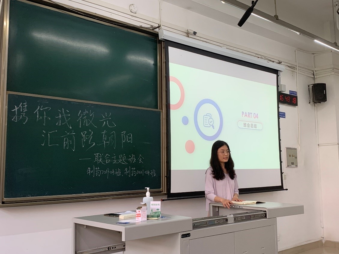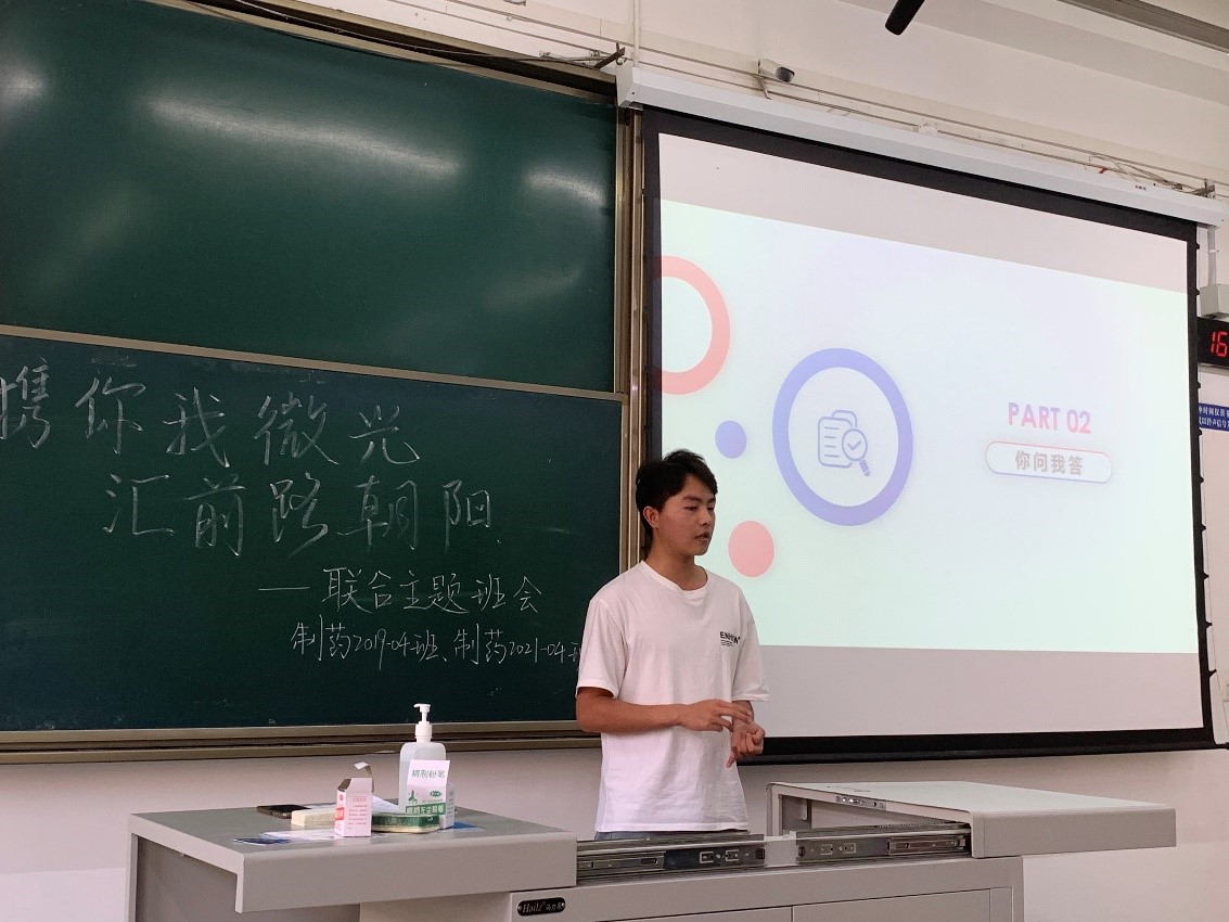 制药工程2019-04班、制药工程2021-04班于犀浦校区X2220联合举办“携你我微光,汇前路朝阳”主题班会。制药2019-04班及制药2021-04班共44人到场参加,会议由游仕煜同学、徐志鹏同学主持。