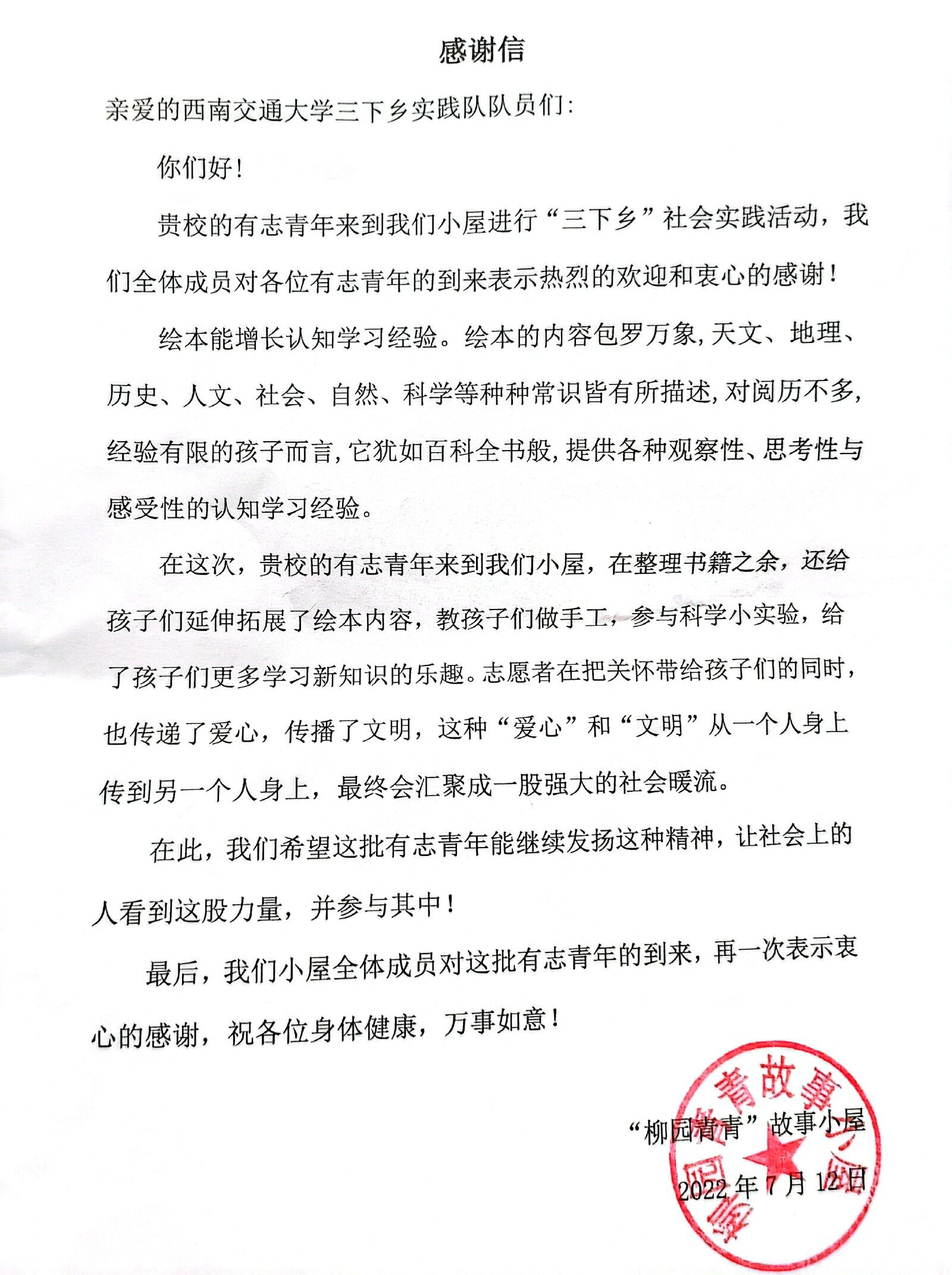 7月9日,志愿者们赴故事小屋。考虑到小朋友的年龄问题,我们志愿者选择以互动为主,讲课为辅的方式将垃圾分类等较为生硬的知识分享给他们,通过开展小朋友喜爱的手工、绘画活动激发他们上课的乐趣,寓教于乐,毕竟“兴趣是最好的老师”,使其化被动为主动才会更好地保证小朋友学习的效率和乐趣。活动反馈良好,得到了合作方的同意和认可,并获得了合作方的感谢信。