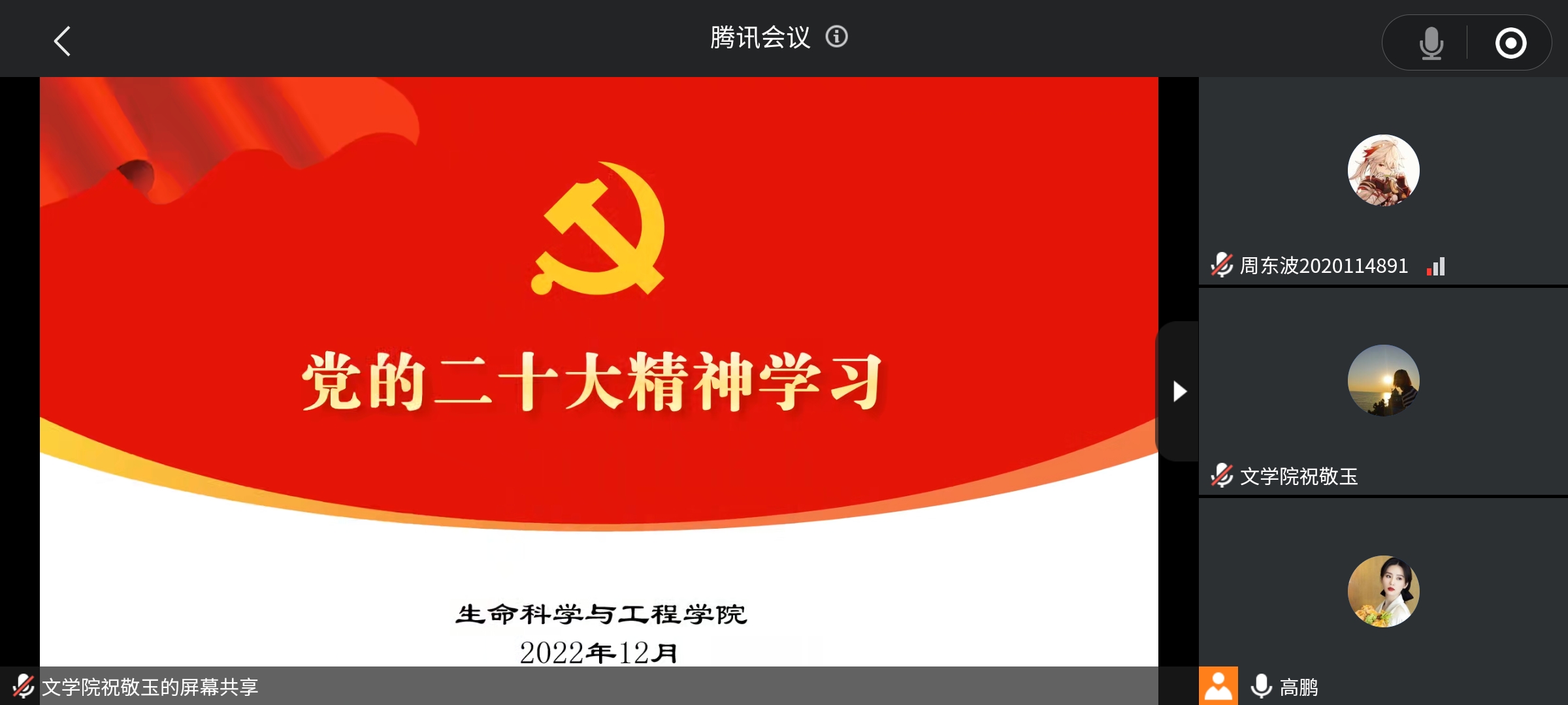 开展学院团委书记领学党的二十大精神学习教育活动,会议由学院团委书记高鹏老师主讲,本科2020级辅导员祝敬玉老师以及100余名青年团员参与会议。