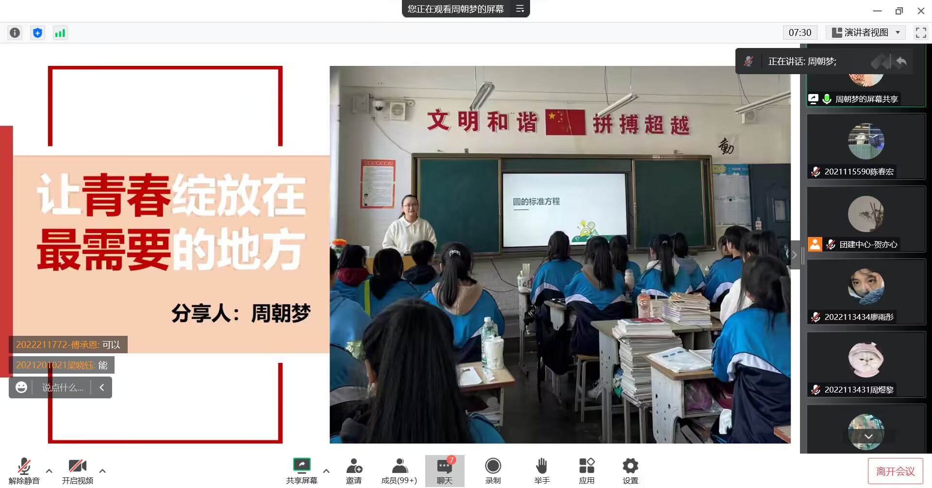 在12月9日晚上开展以“永远跟党走,奋进新征程”为主题的思政育人讲座。本次讲座在腾讯会议平台线上召开,讲座由周朝梦、郑玉龙、余丝雨、袁小宝组成的青年讲师团进行宣讲,由新澳门六合彩资料