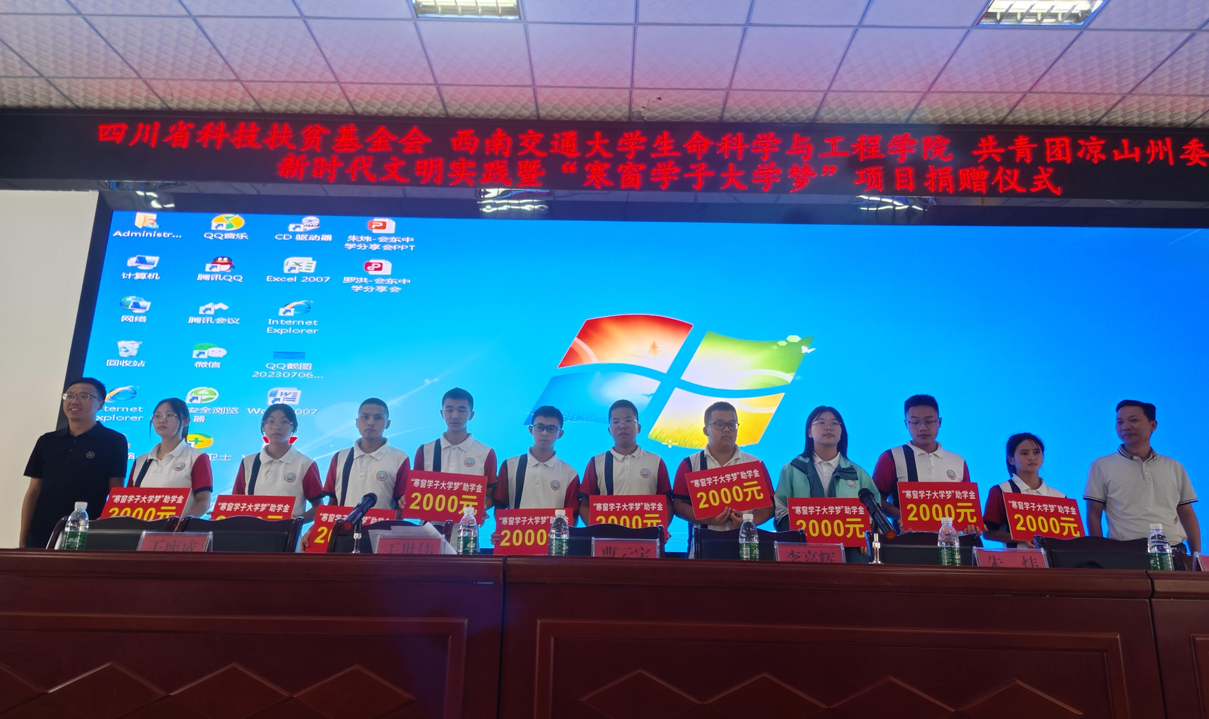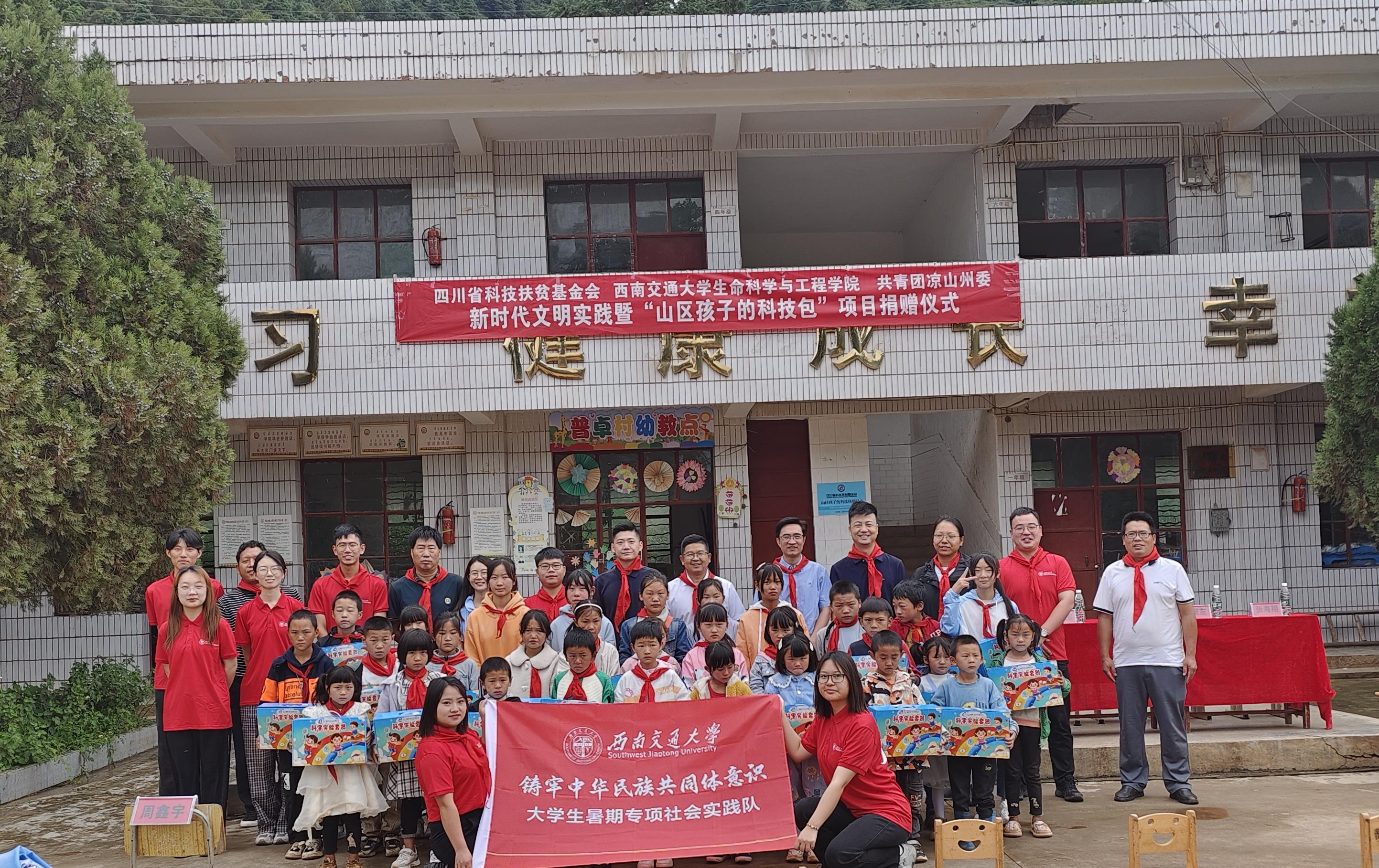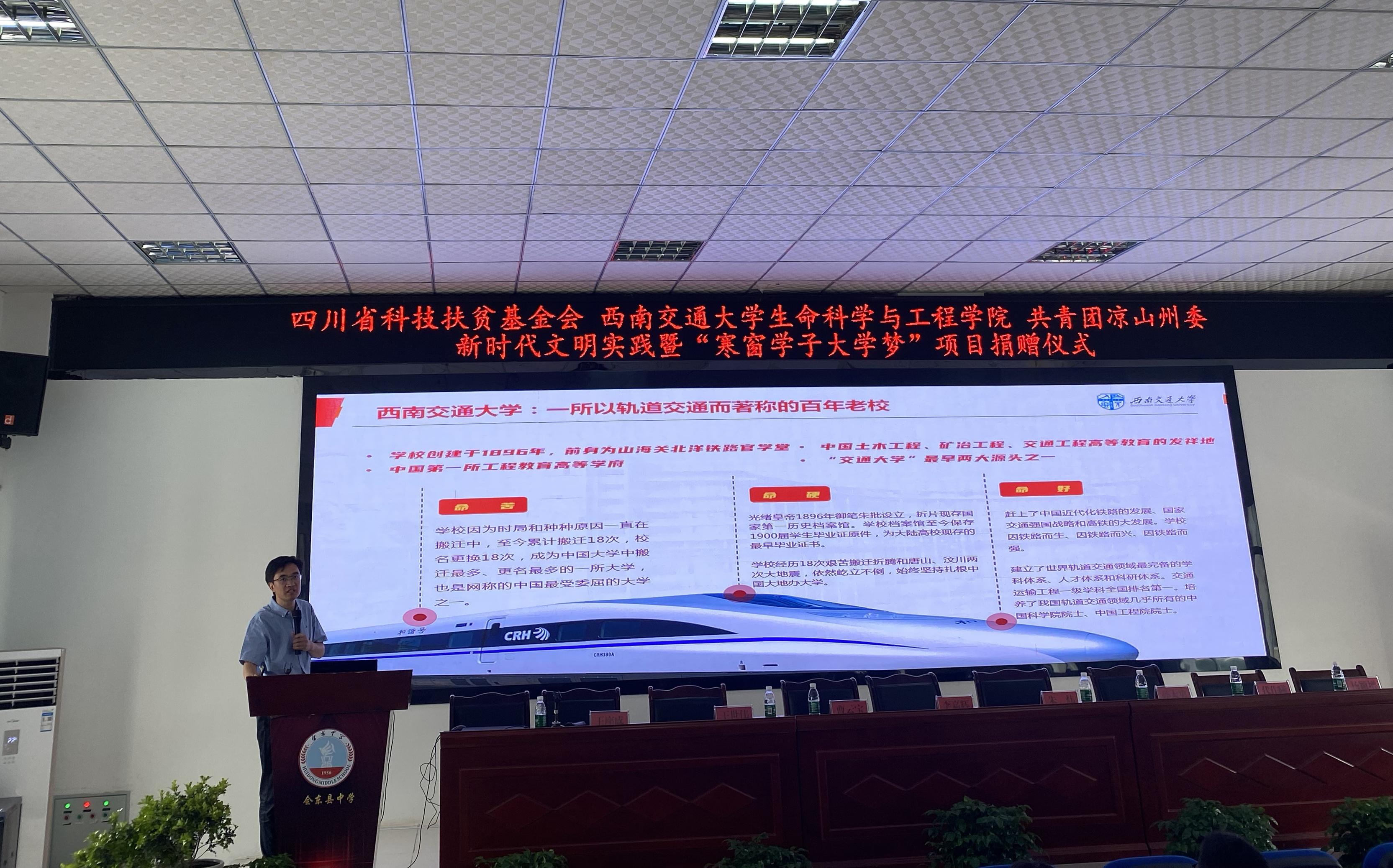 8月22日,实践队奔赴凉山州会东县,在会东县中学举行西南交通大学“优质生源基地”授牌仪式,在四川省科技扶贫基金会的支持下,为会东县中学、和文中学的50名高中生捐赠10万元的“寒门学子大学梦”项目助学金,为会东县堵格镇普塘小学、坪塘小学的200名幼教及小学生捐赠价值4万元的“山区孩子的科技包”。四川省科技扶贫基金会副理事长兼秘书长李嘉辉,西南交大新澳门六合彩资料