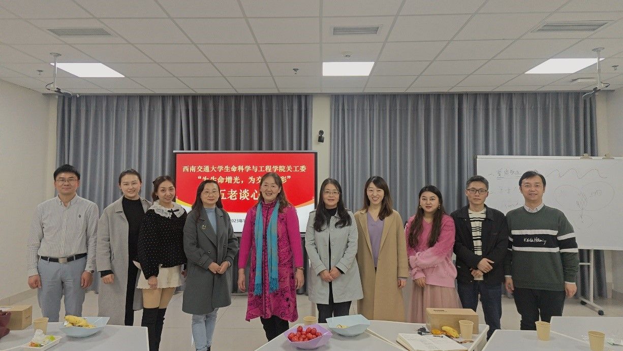 党委、关工委、院工会在犀浦校区举办了“为生命增光,为交大添彩”教师工作坊主题活动。学院党委书记李卓慧,党委副书记、纪委书记、工会主席朱炜,副院长李遂焰,院长助理黄新河、华晶晶、王毅及学院部分教师参加本次活动,活动由朱炜副书记主持。
