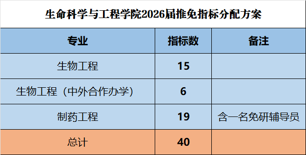 2026届免试研究生推荐指标分配方案公布如下: