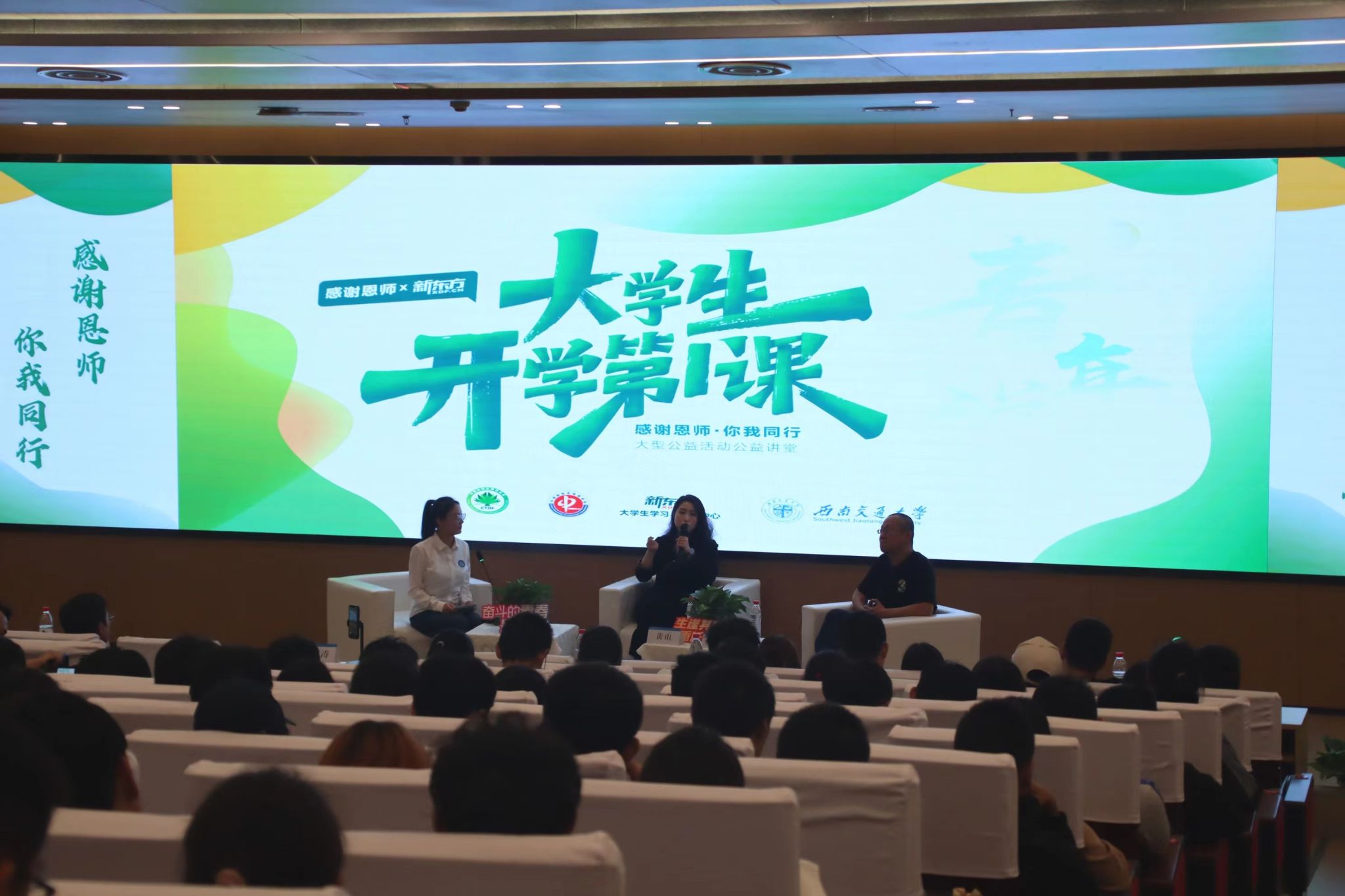 联合承办的“感谢恩师·你我同行”大型公益活动——《大学生开学第一课》暨西南交通大学时代新人铸魂工程重点项目“学思讲坛”第18期在犀浦校区举行。第25届四川青年五四奖章获得者、成都越凡创新科技有限公司CEO黄山女士,新东方教学名师王江涛先生做客活动进行现场分享,中国教师发展基金会、中国教育发展基金会“感谢恩师·你我同行”公益活动项目组负责人姜妍、新东方大学事业部渠道负责人王焕宇,西南交通大学党委学生工作部副部长邢晓鹏、新澳门六合彩资料
