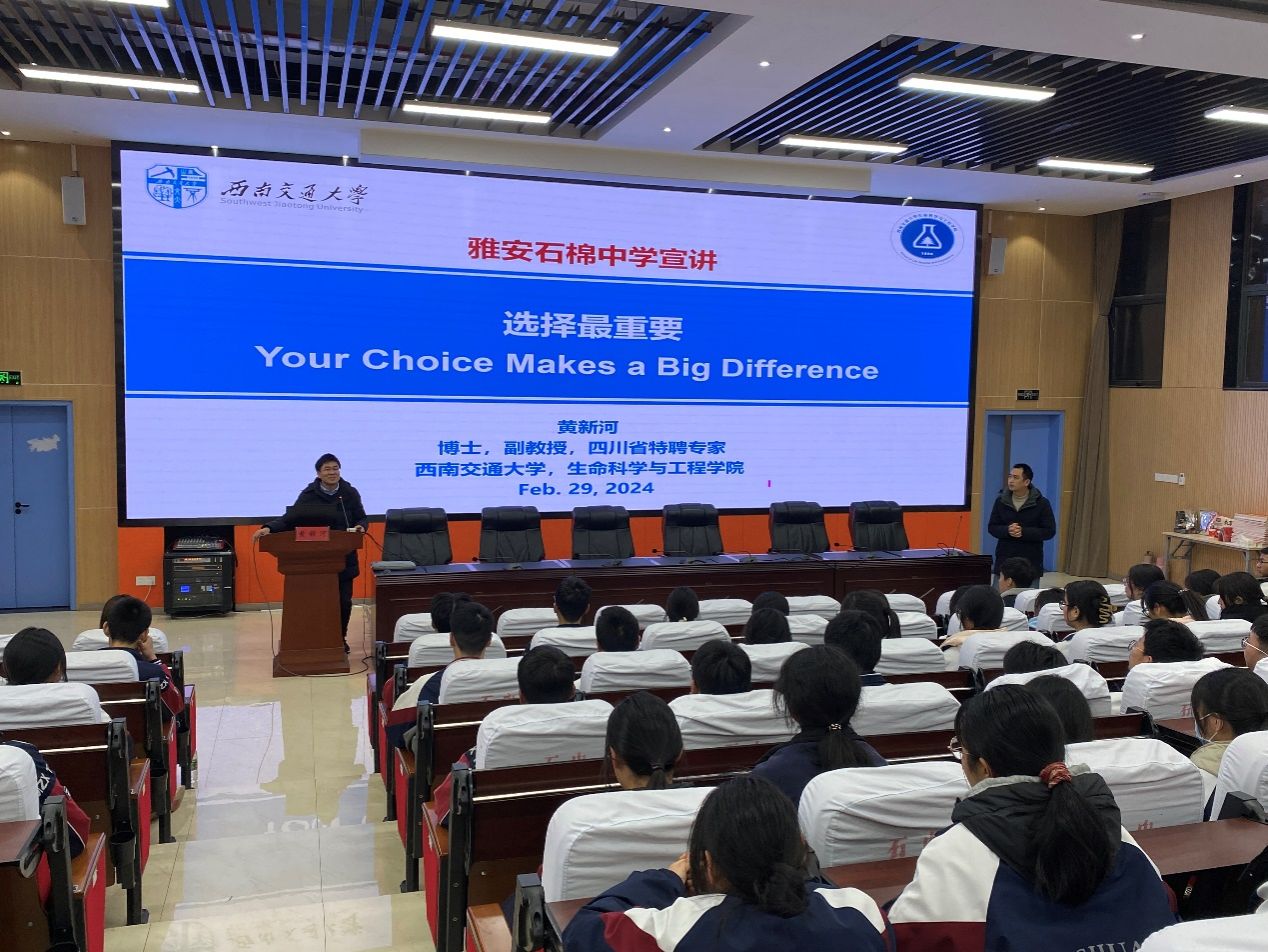 在仪式上,西南交通大学为石棉县中学授牌“优质生源基地”,四川省科技扶贫基金会为石棉中学的50名高中生捐赠10万元“寒门学子大学梦”项目助学金,黄新河副教授以《选择最重要》为题为石棉中学200余名高中学子开展专题报告,新澳门六合彩资料
