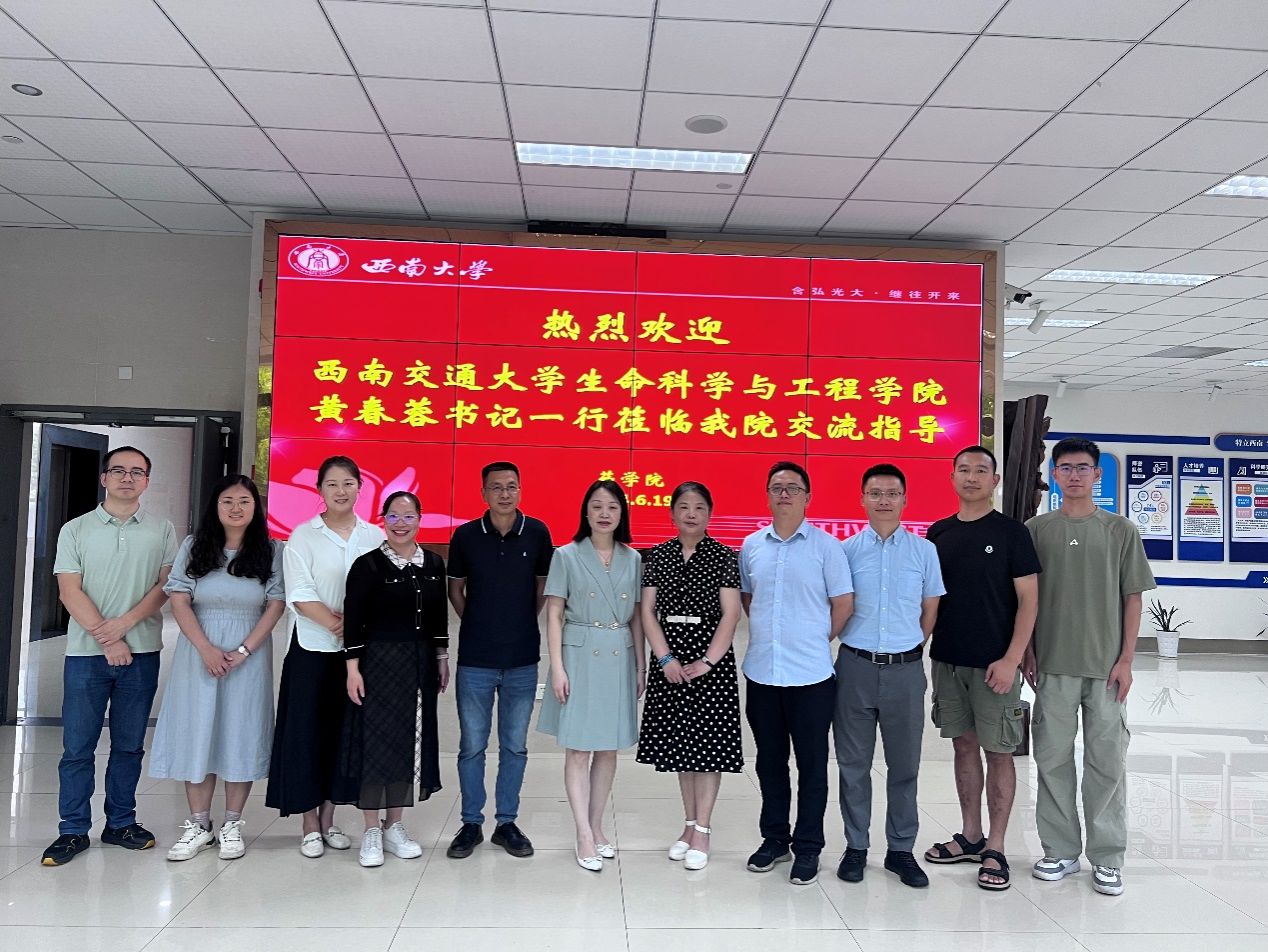 6月19日上午,黄春蓉书记带队来到西南大学,先后参观了生命科学学院和药学院科研及教学实验室,分别与生命科学学院和药学院领导及教师代表进行了座谈交流。生命科学学院党委书记蒋寒、副书记张颖、副院长陶文静介绍了“红色基因铸一流,一体同构全贯通”的工作体系。药学院党委书记陈敏、副书记杨坚、专业负责人李春梅介绍了“党建和事业融合发展”工作举措。双方还围绕学生成长及就业、师资队伍建设和实验室管理等方面进行了深入交流。