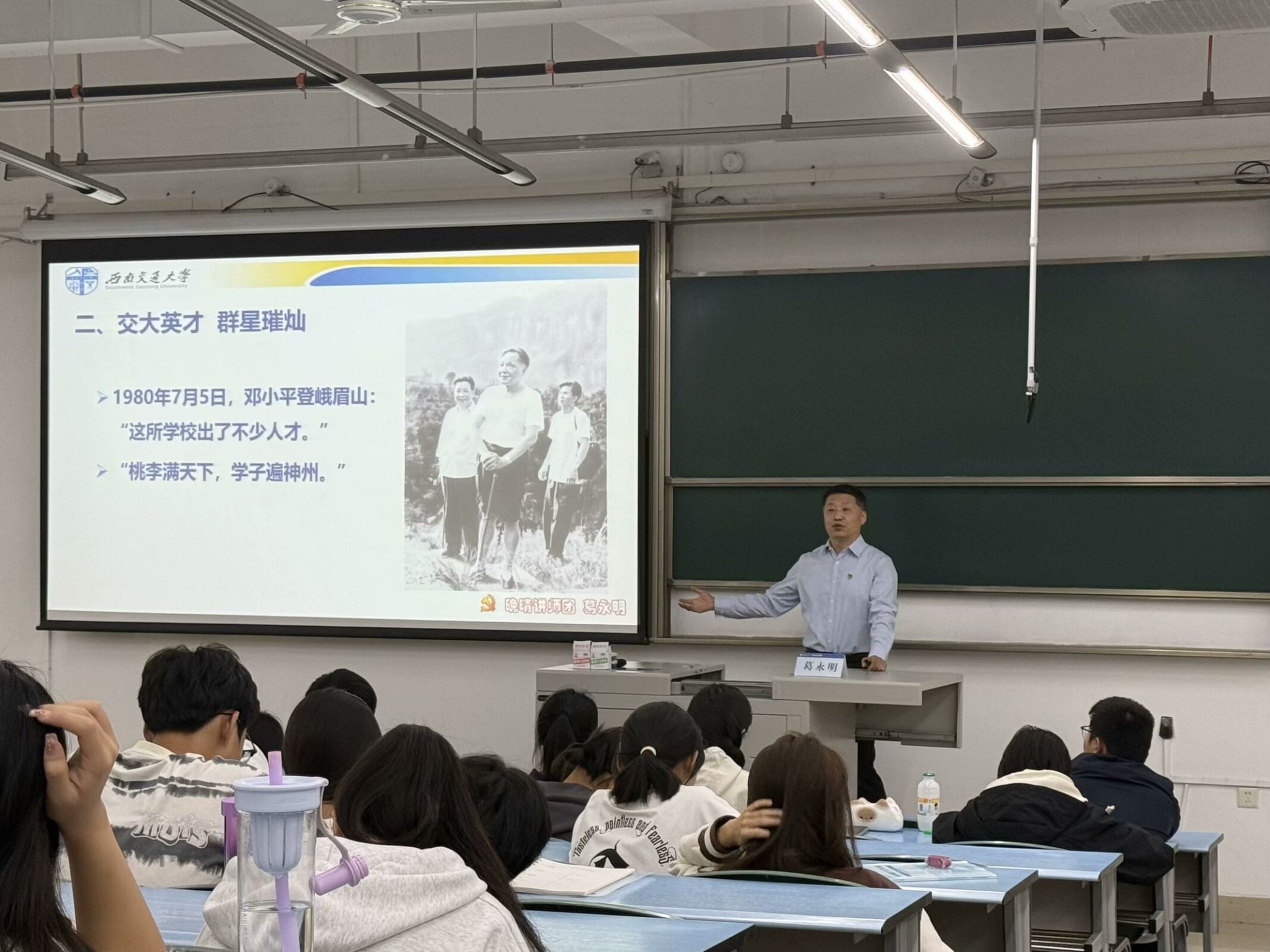 10月24日,学院特别邀请西南交通大学“晚晴讲师团”成员葛永明老师做客学思讲坛,以“生生不息,启航新程”为主题为全体新生开展校史校情教育专题报告会。学院2024级全体本科生参加本次报告会,报告会由学院团委书记杨颖增老师主持。