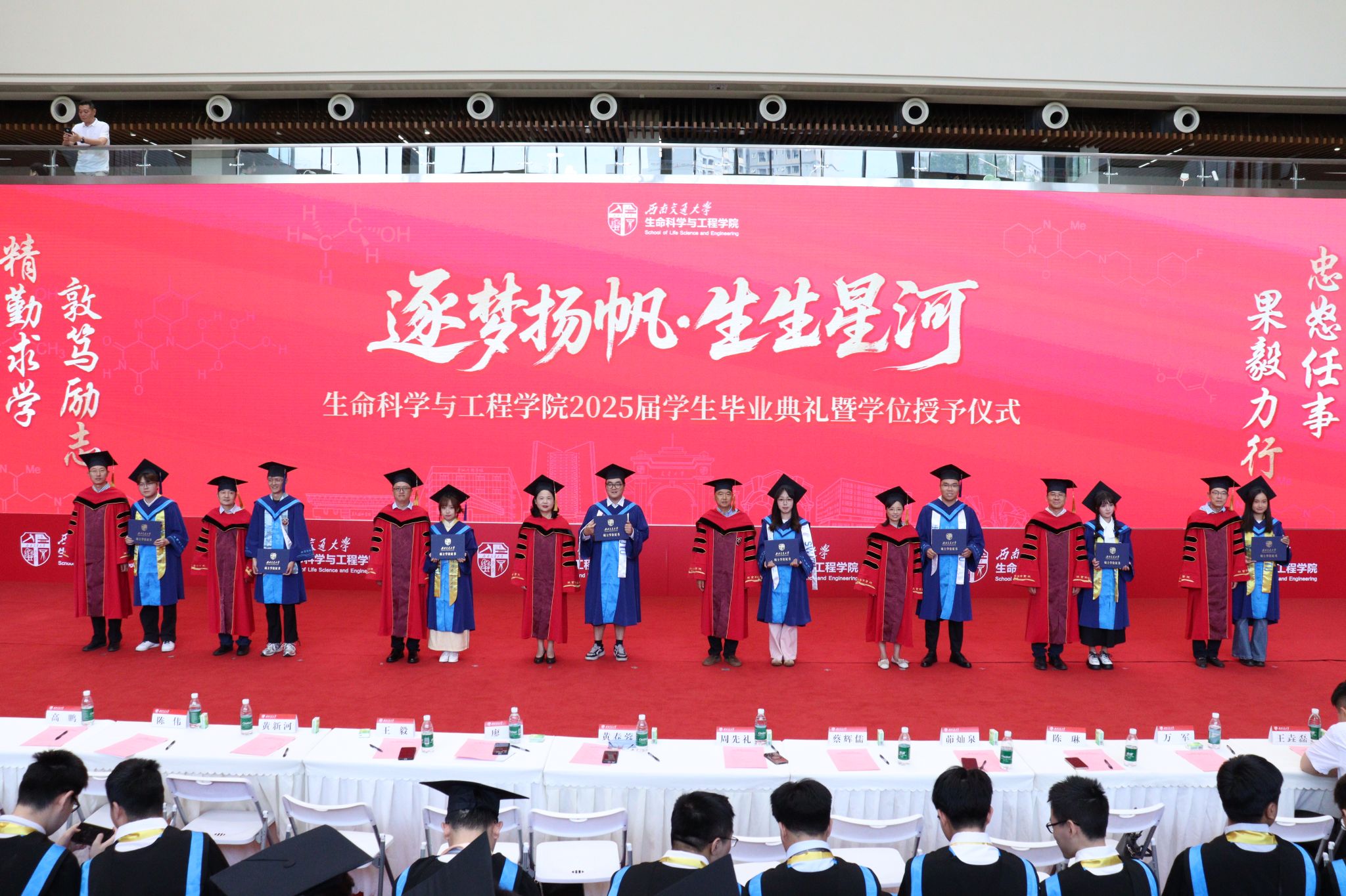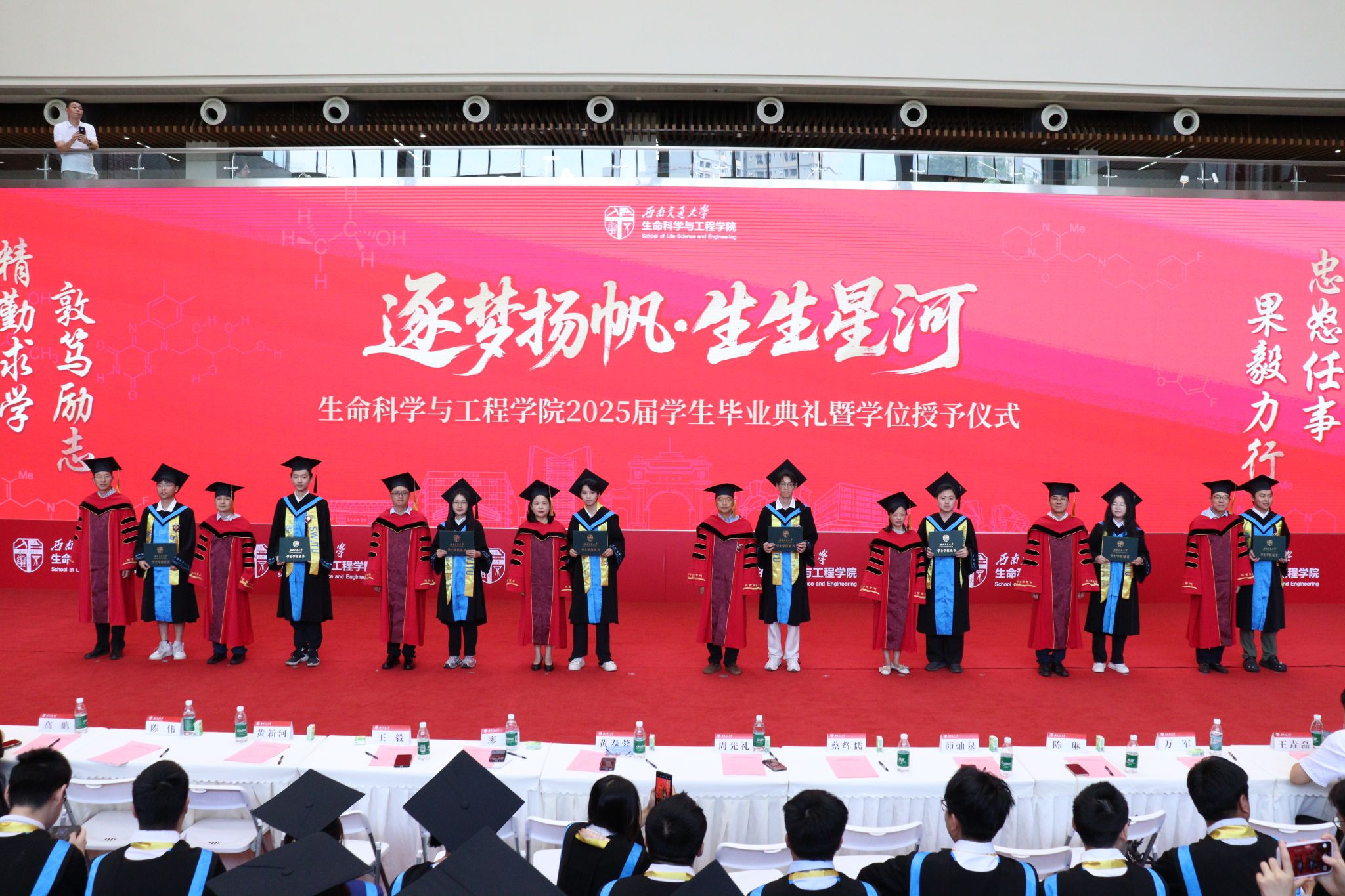 典礼在精彩的歌曲串烧表演中落下帷幕。学院办学25年来,已培养毕业生5000余名,为生命健康领域输送了大批优秀人才,本届毕业生中也涌现出多位学术新秀和创业先锋。“扬帆起航正当时,砥砺奋进新时代”,在《一路生花》的旋律中,2025届生命学子即将踏上新征程,他们必将以实际行动诠释交大学子的责任与担当,在实现中华民族伟大复兴的新征程中书写属于新时代生命人的精彩华章。