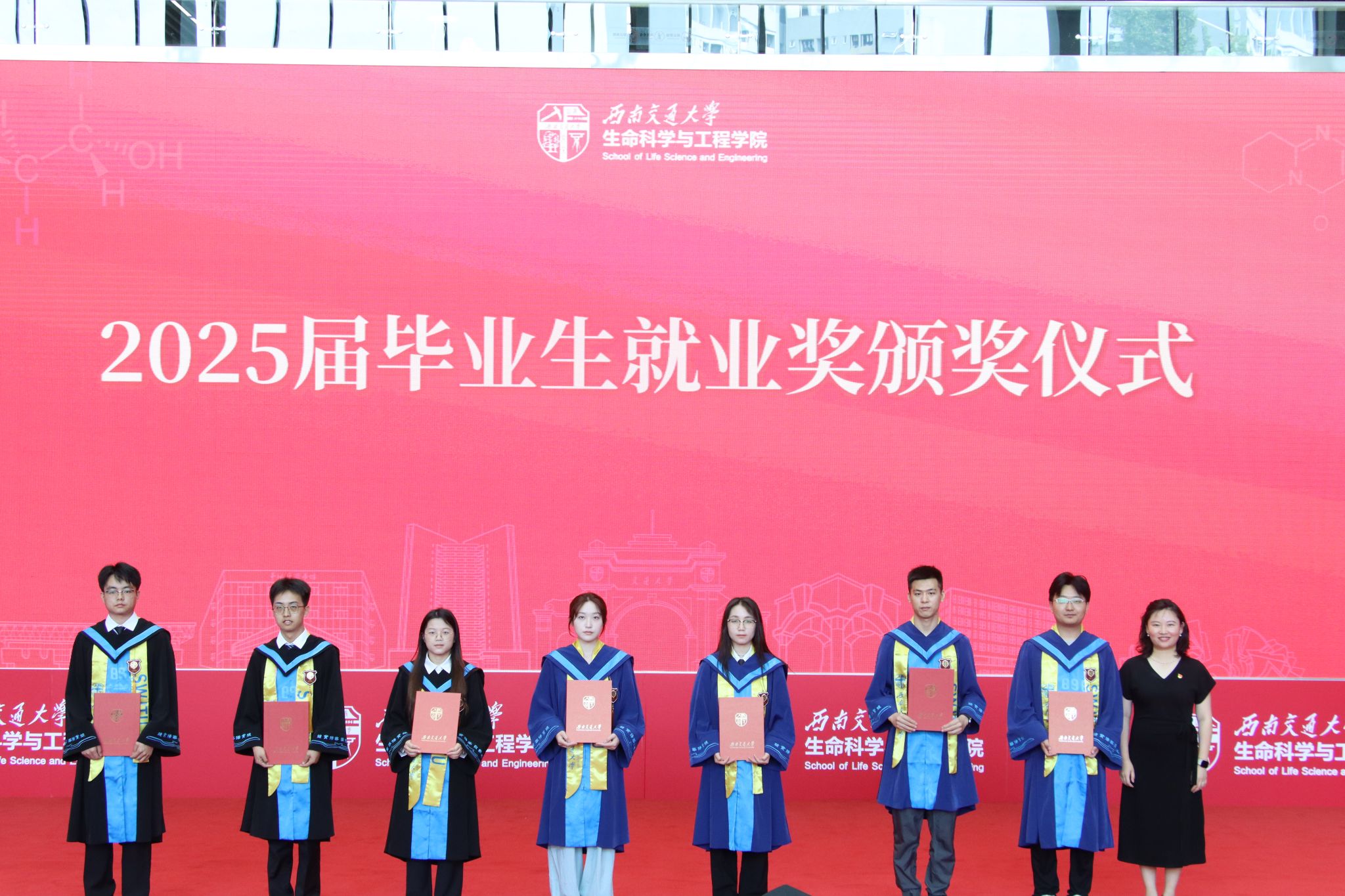 典礼现场洋溢着浓浓的师生情谊。在学院办学25周年之际,学院首届毕业生校友们在祖国各地,通过视频送来祝福。2000级生物工程专业校友代表、成都温江科创中学副校长蔡辉儒在典礼现场分享了自己在生物医药领域的奋斗故事,勉励学弟学妹永葆学习热情,同时珍惜家庭温暖。2025届毕业生则献上精心准备的礼物——由全体毕业生共同拼贴的“25”数字艺术画,庆祝学院办学25周年。