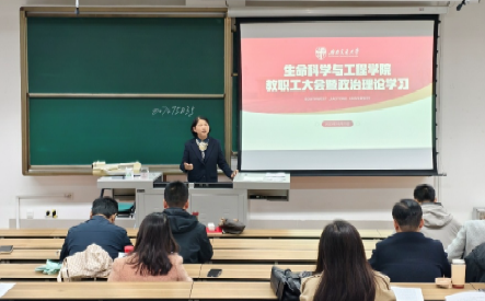 在九里校区J4106教室召开全体教职工大会暨政治理论学习。会议由学院党委书记黄春蓉主持,学院全体教职工参加会议。