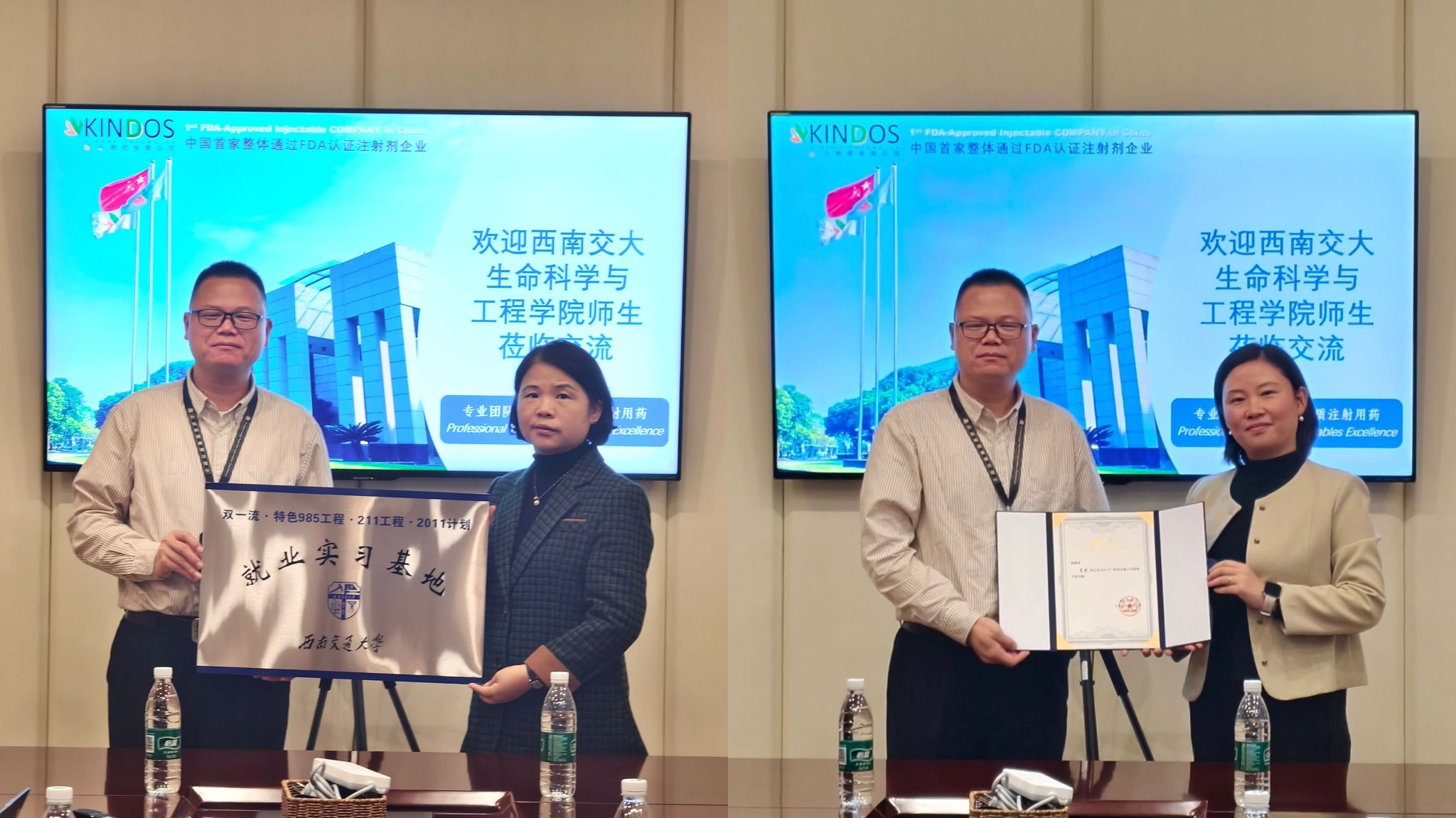 人才培养情况进行介绍,李笳副总监对企业及行业发展现状进行详细讲解,为双方进一步合作奠定了良好基础。与会人员围绕学生实习就业、联合培养等内容深入沟通,在深化校企合作、推动产学研融合方面达成共识。会上,黄春蓉书记为公司进行了西南交通大学就业实习基地授牌,高鹏副书记为李笳副总监颁发西南交通大学校外生涯导师聘书。