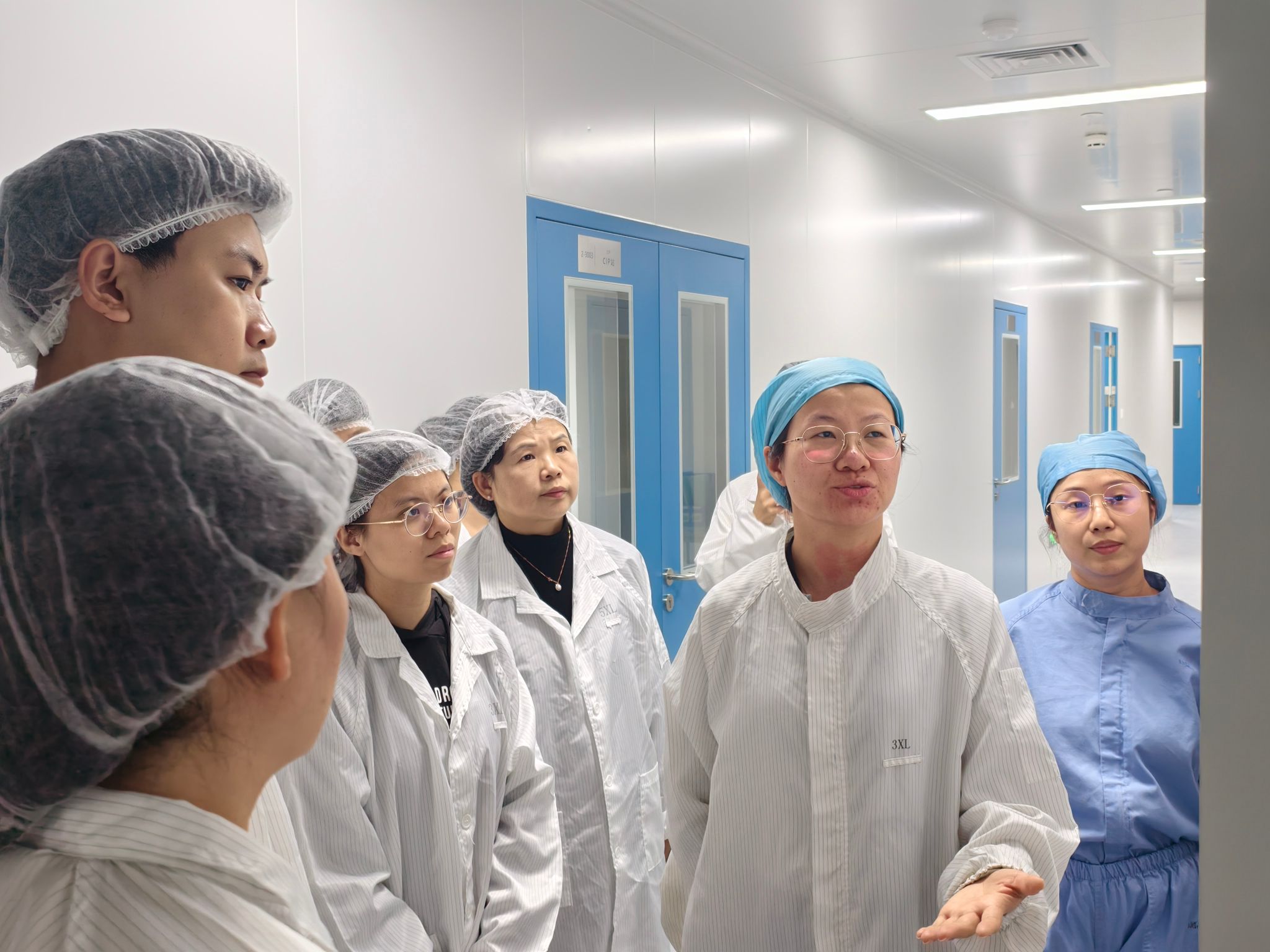 校友代表的陪同下,学院师生参观了公司重组蛋白与抗体药物中试及产业化平台、原液生产车间与FDA零缺陷认证药品研发实验室。各业务负责人围绕药品研发与生产全流程作了系统讲解,帮助同学们深入了解从实验室研究到产业化生产的转化过程,切实认识到专业理论与实际操作相结合的重要性。