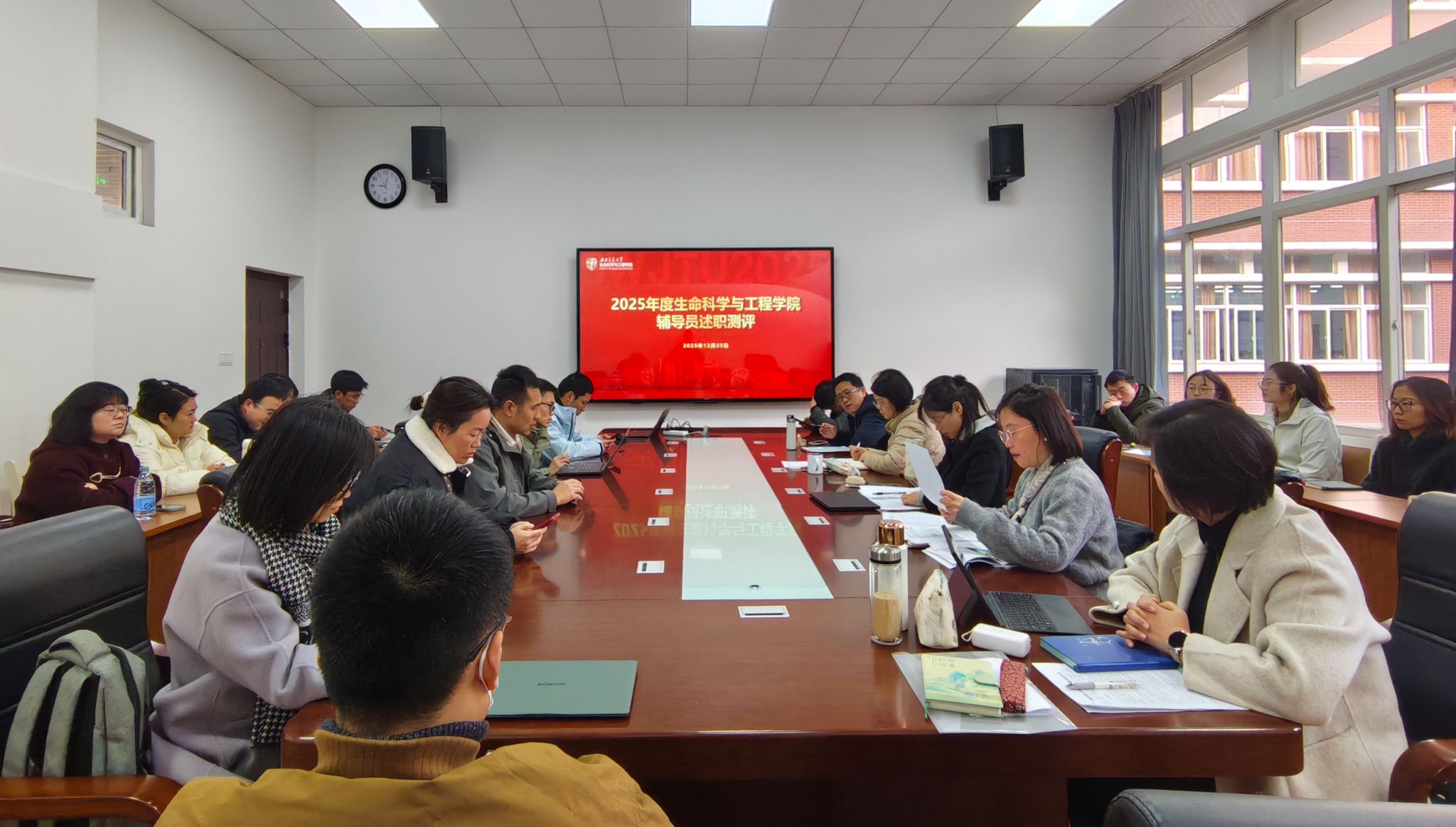 在工作述职环节,辅导员与班导师两支队伍协同联动,共同诠释“融通共育”的生动实践。7位辅导员老师立足立德树人根本任务,围绕辅导员九大工作职责,从学生日常管理、专项工作成效、个人工作亮点与未来规划等方面进行了系统汇报,全面展示了一年以来的工作成效。18位班导师则从专业教师视角,聚焦“学业指导、科研启蒙、创新培养、专业规划”四个维度,汇报了指导学生专业成长的过程。