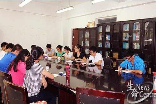 党委副书记罗妍妍主持,团委书记崔健,团委副书记孔琳、李慧明,13级辅导员高鹏、魏源成,团委办公室主任谭富明,生命学院五大团学组织代表及两位年级助理也积极参与其中。