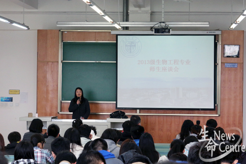 2013级生物工程专业师生座谈会在X4151顺利召开,本次会议由院长助理李遂焰副教授主持,党委副书记罗妍妍,生物工程系主任喻凯教授、李学如教授、孟涛副教授等生物工程系各位老师,团委副书记、13级辅导员高鹏老师,2010级优秀学生章文龙出席了本次座谈会。2013级生物工程专业全体同学也参与其中。