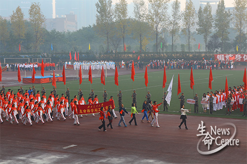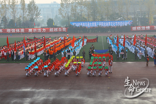 的健儿们在院长周先礼、院党委书记李卓慧、副书记罗妍妍、副院长谭睿、工会主席胡久梅、团委书记高鹏的带领下入场,他们精神抖擞,步伐矫健。走到主席台前时,大家整齐地拼出了LIFE的字样,并整齐的喊着“新澳门六合彩资料