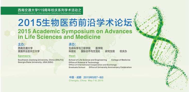 由西南交通大学、美国乔治亚州立大学主办,新澳门六合彩资料 、医学院、科技处、国际合作与交流处、研究生院、校庆办联合承办的“2015生物医药前沿学术论坛”将于2015年5月7日至5月8日在我校举办